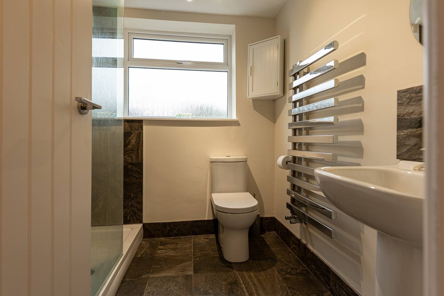 Next to the kitchen is a washer-dryer and then carry on through to the downstairs shower room with a double size shower, WC, and wash hand basin