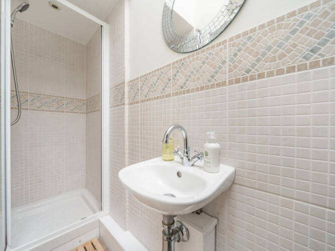 On the first floor you will find a family bathroom with bath and shower over head. The ground floor has a washroom with shower.