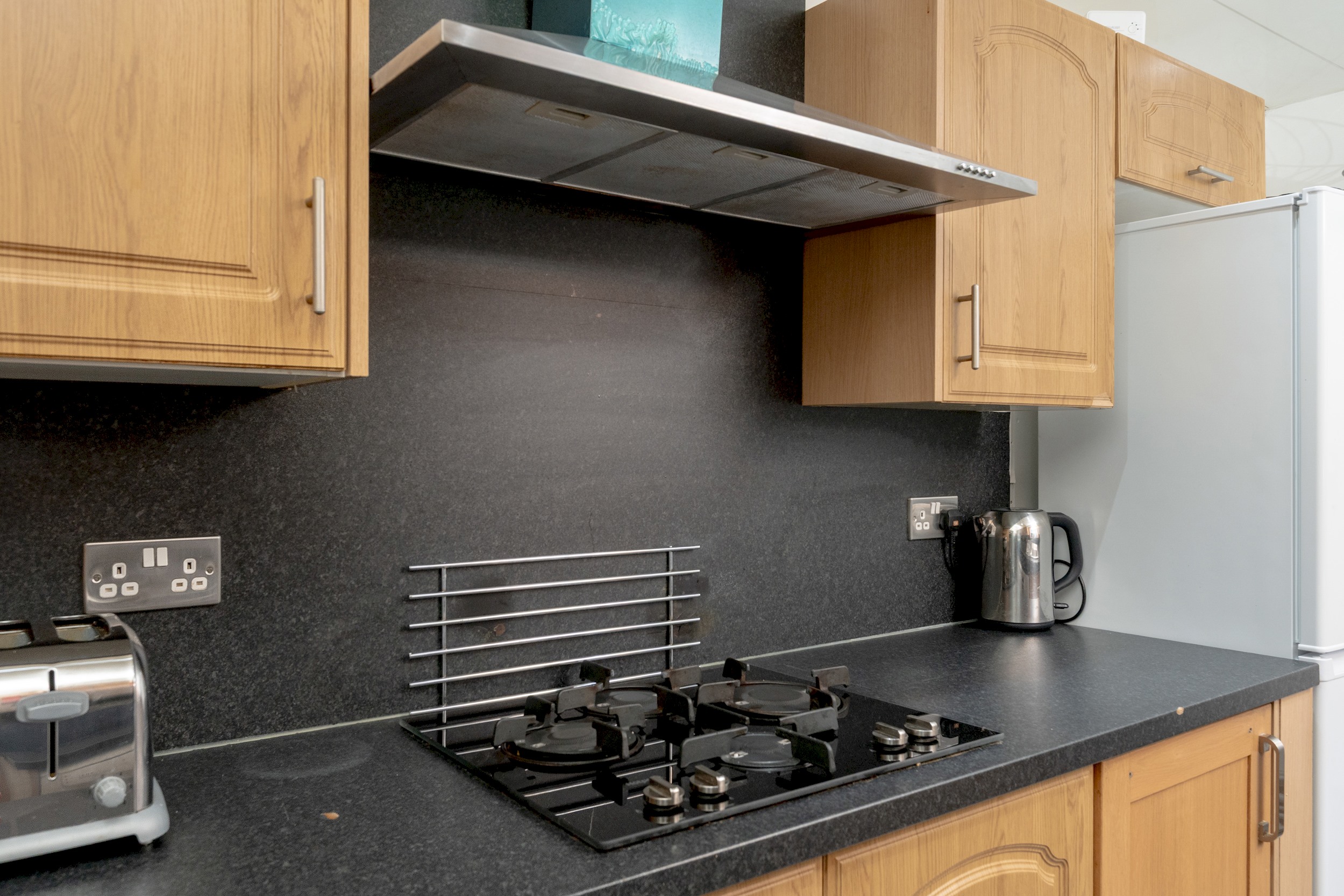 Fully-equipped kitchen: Kettle & Toaster · Oven & Hobs · Fridge & Freezer · Dishwasher · Microwave · Plenty of cookware!