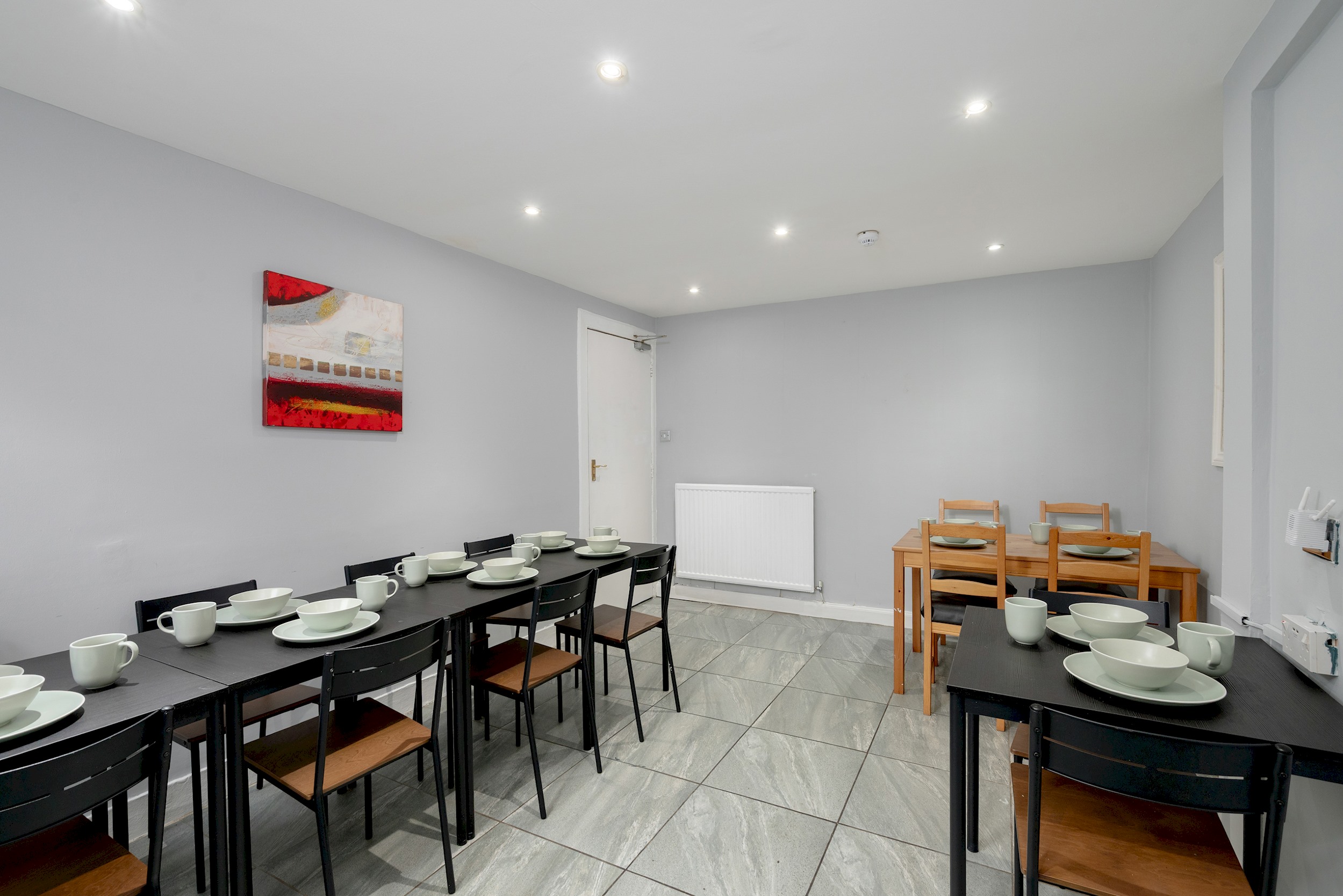There’s a bright and inviting living room, perfect for unwinding after a day exploring the city – ideal for group gatherings, movie nights, or simply relaxing together. The separate dining room provides a great setting for shared meals, whether you’re cooking at home or enjoying a takeaway from one of the many nearby restaurants.
