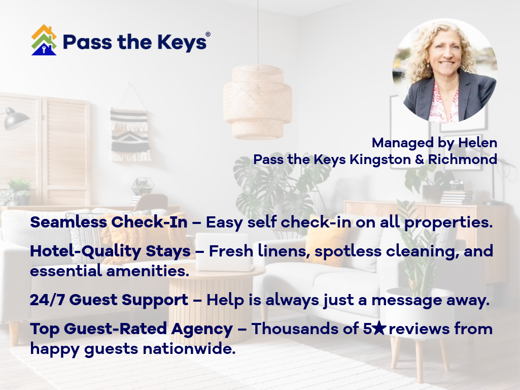 My name is Helen and I run Pass The Keys® in Richmond and Kingston. We manage every service from back to back cleaning sessions to providing maintenance suppliers when required. All of our hosts enjoy a ‘hassle free’ hosting experience due to our 24/7 availability, so you can rest assured your property is in good hands.