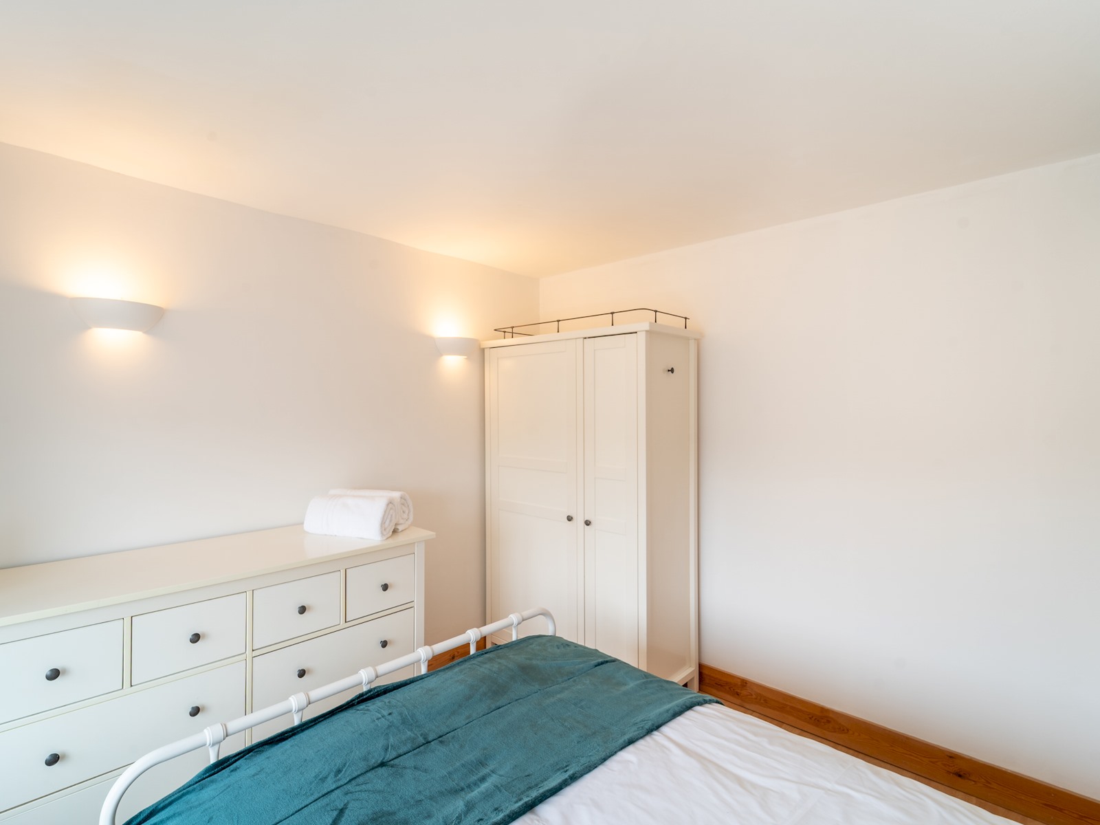 2nd bedroom features a small double (4ft wide), ample enough room for one guest, a little bit of a squeeze for 2! Built-in wardrobe and chest of drawers.
