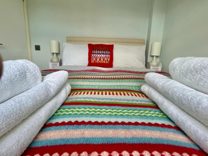Bright double bedroom – featuring a super comfortable bed with soft, fresh linens.