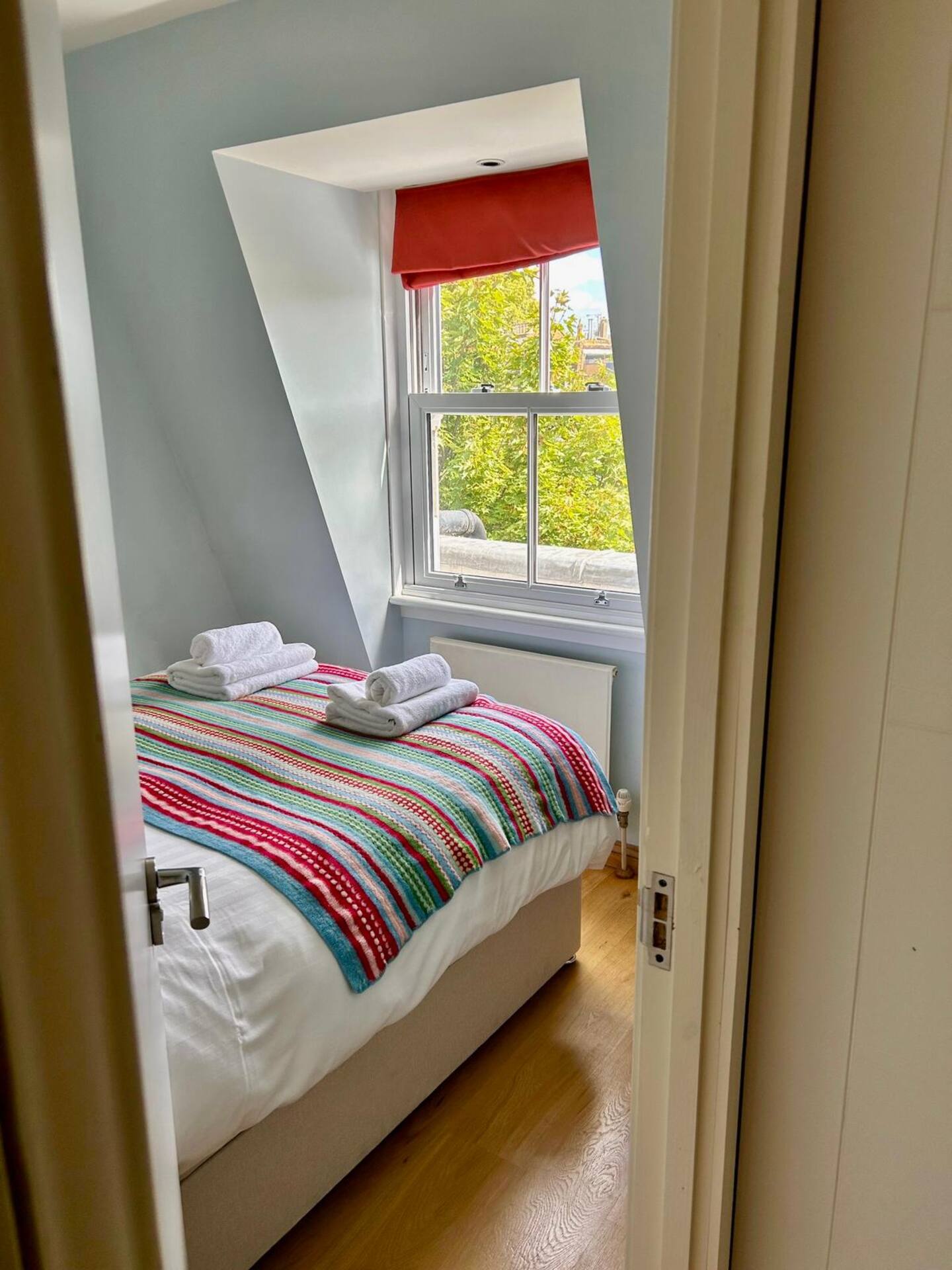 Set on the top floor of a charming Victorian townhouse, this light-filled and tranquil flat is the perfect base in West London. Combining modern comforts with classic character, it offers everything you need for a relaxing stay: