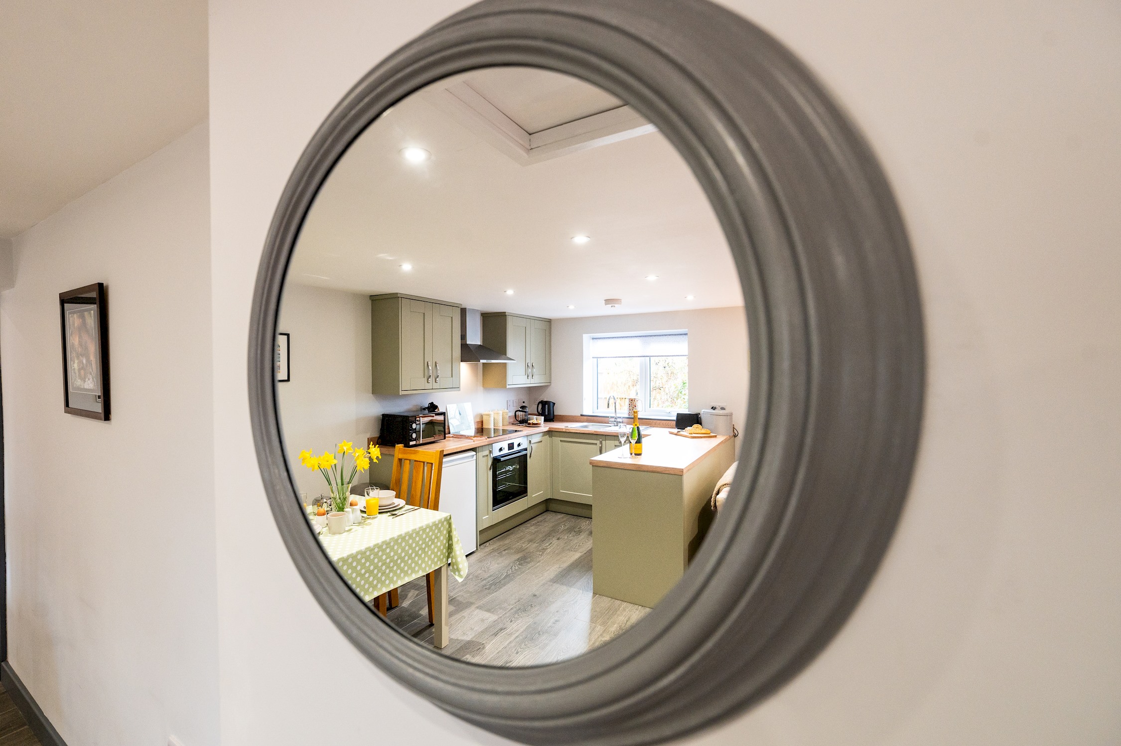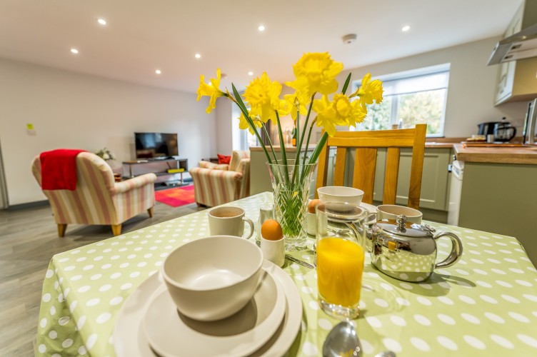 The well-equipped kitchen has everything you need during your stay, including an electric oven and induction hob, microwave, fridge, dishwasher, and washing machine – perfect whether you’re cooking a leisurely breakfast or a cosy evening meal.