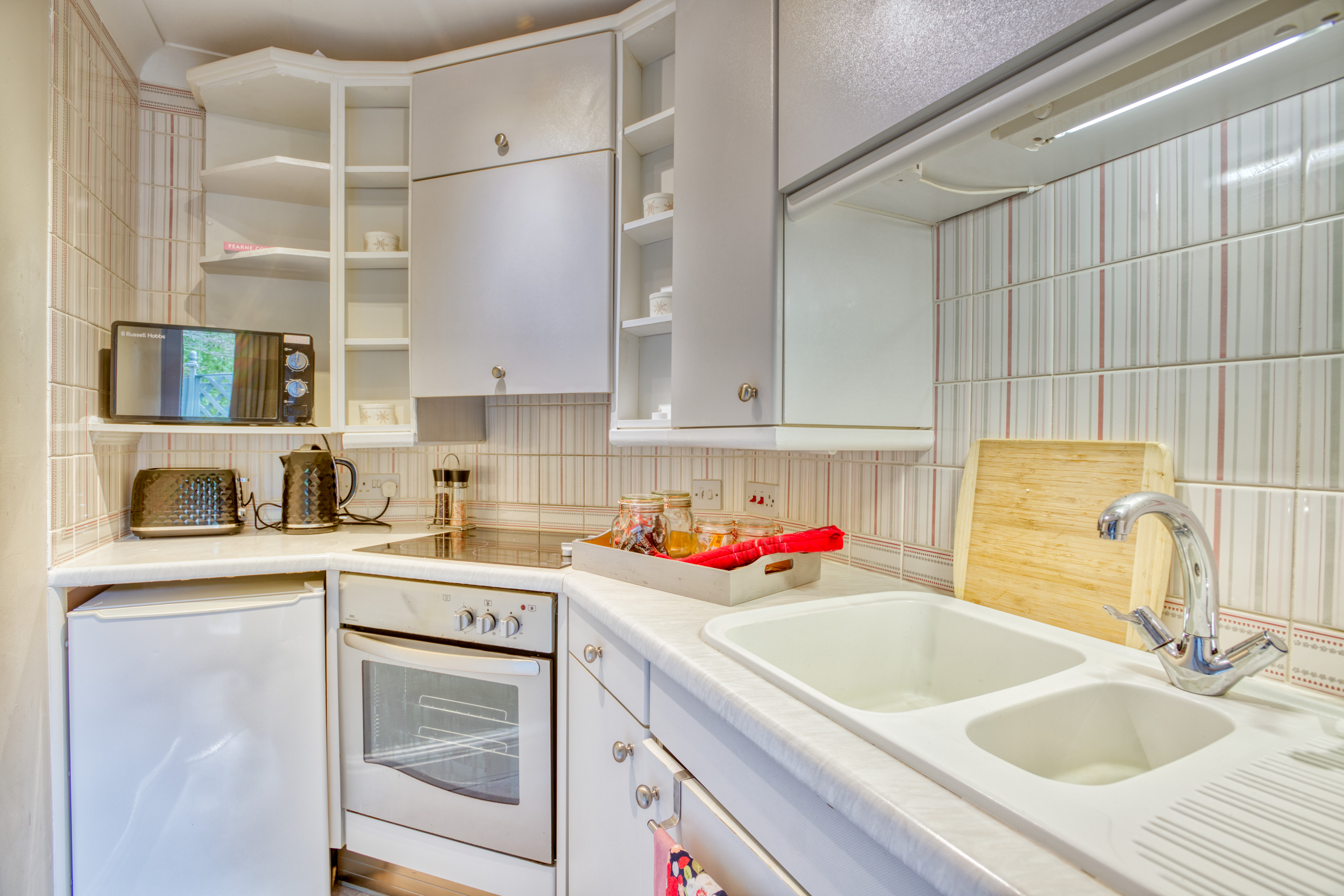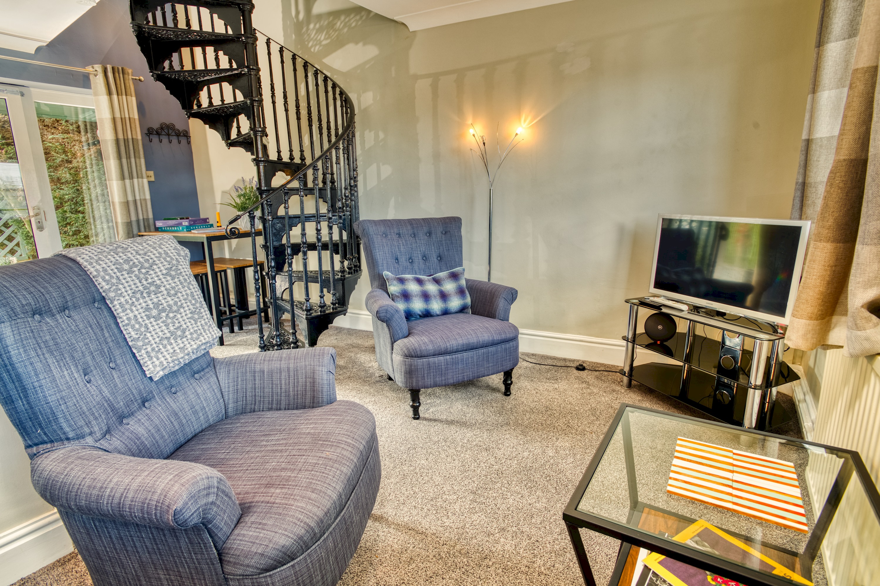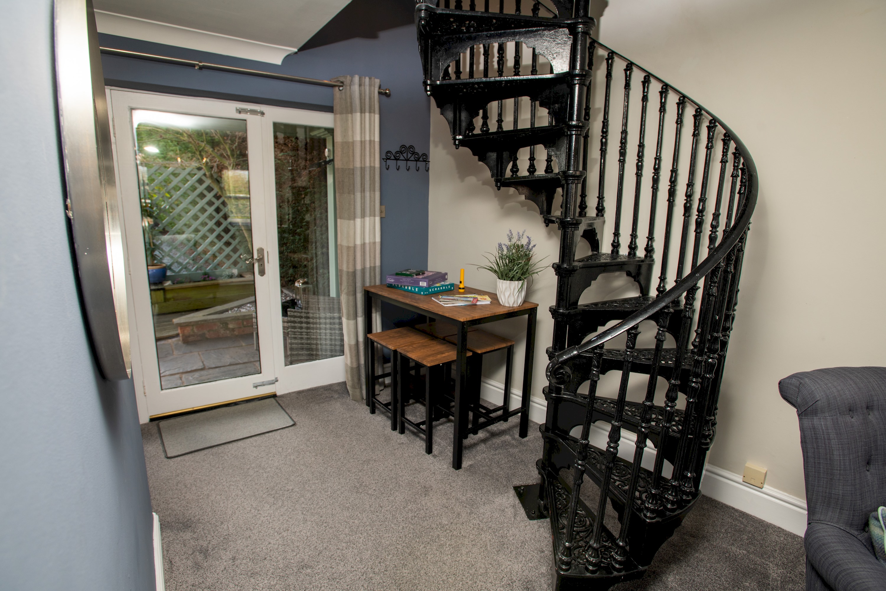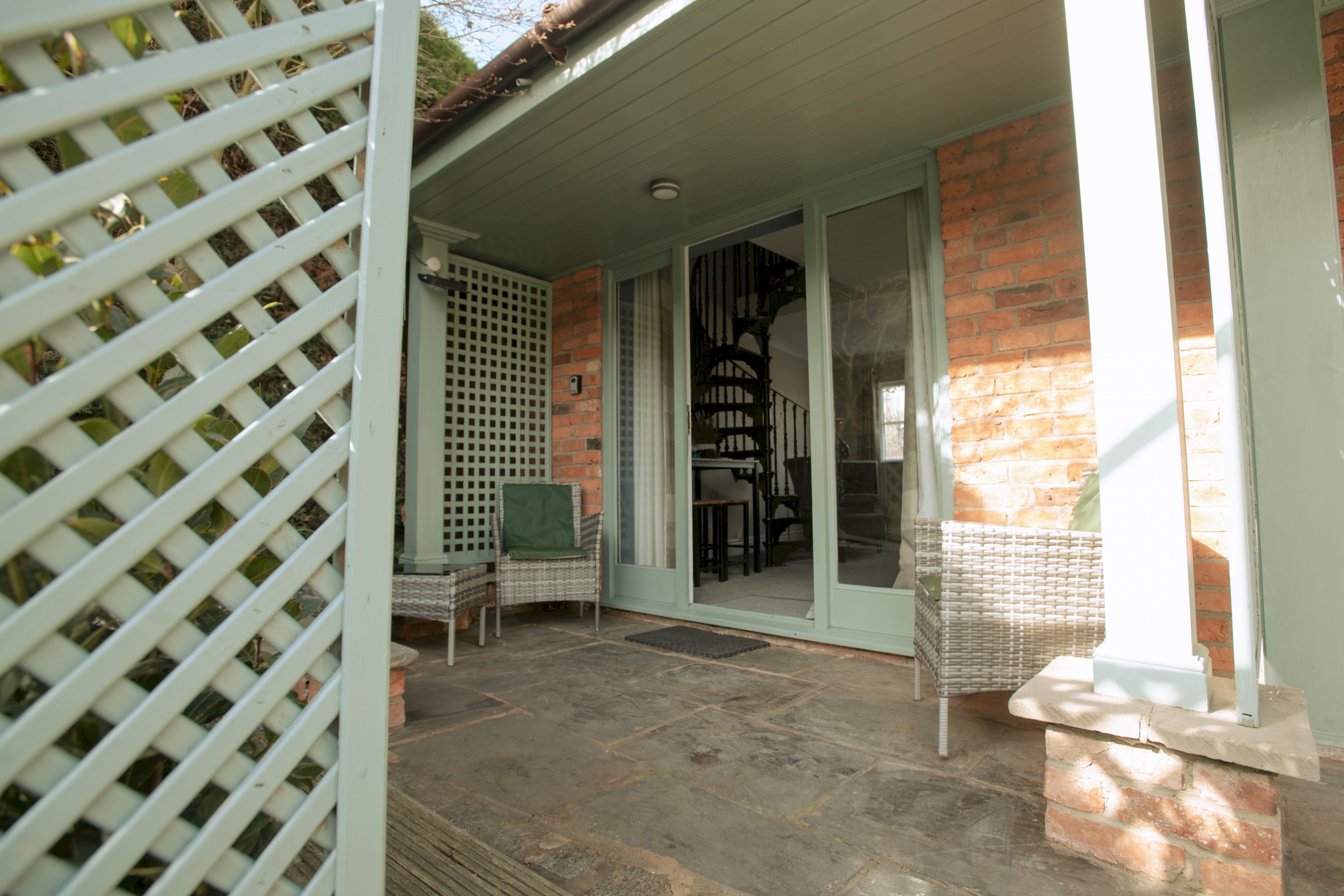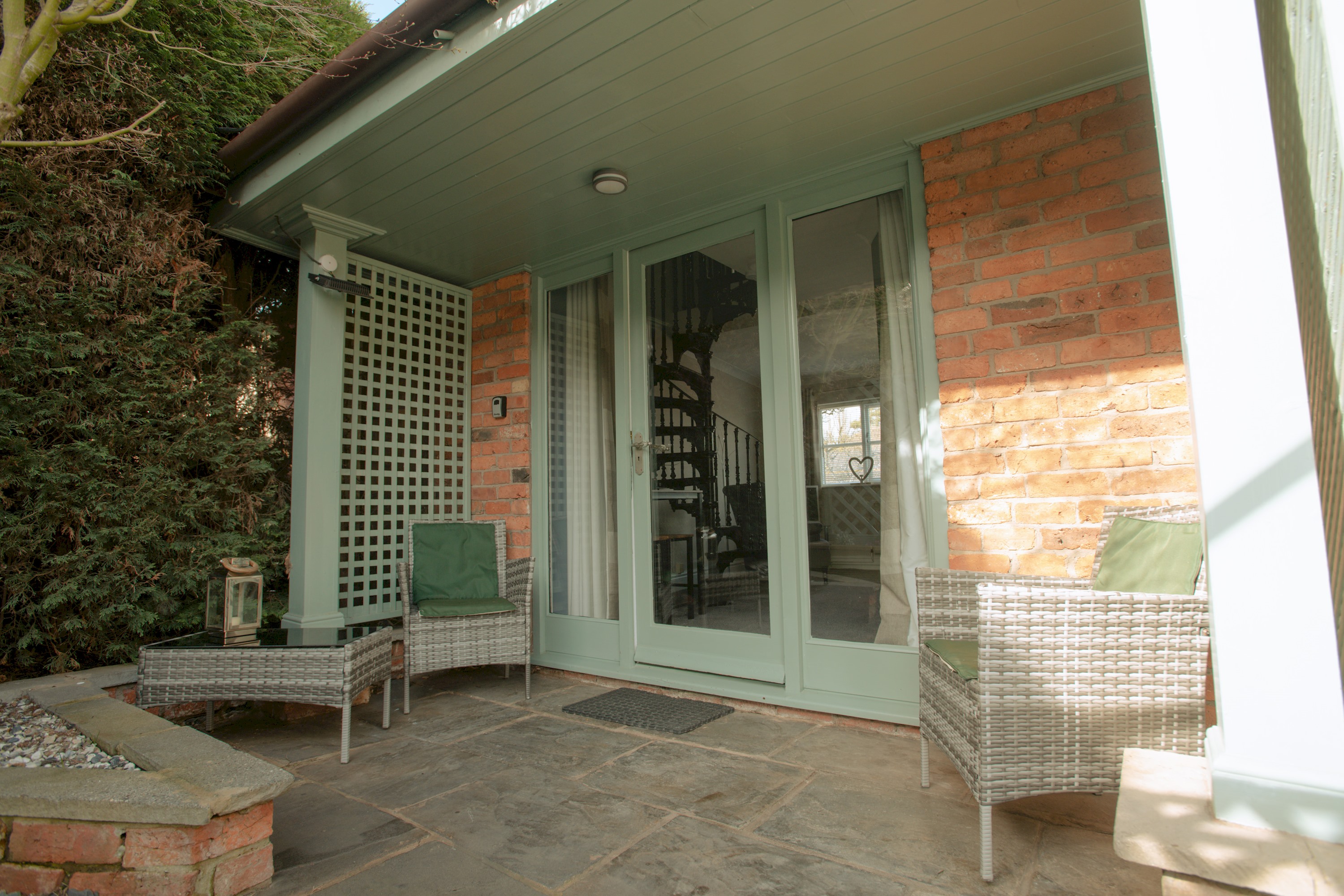 There is a peaceful porch, at the front of the property, where you can sit and enjoy your breakfast n the sunshine. As you walk in, there is a small kitchen on the right with a range of cooking amenities. Straight ahead is a sitting area with a sofa bed and to the left is a spiral staircase leading up to a dressing room that links onto the bathroom with a shower over the bath and the master bedroom with a comfortable double bed and ample storage.