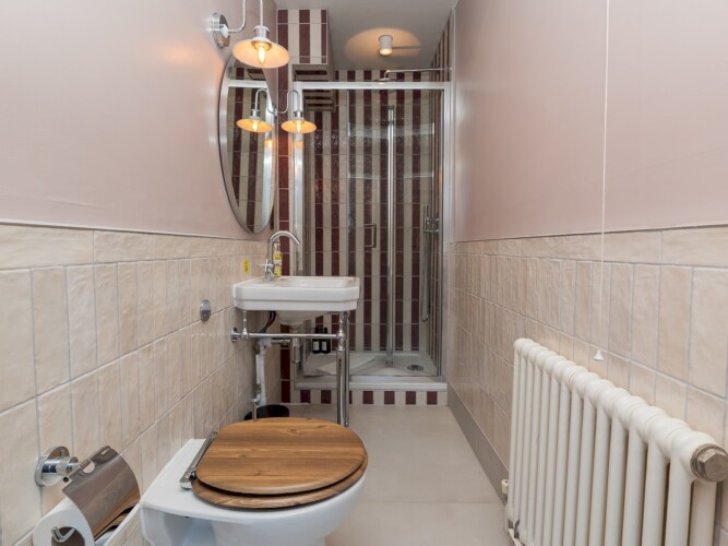 Access is via a street-level door and a communal staircase. Your accommodation is completely private with its own front door off the shared hallway.