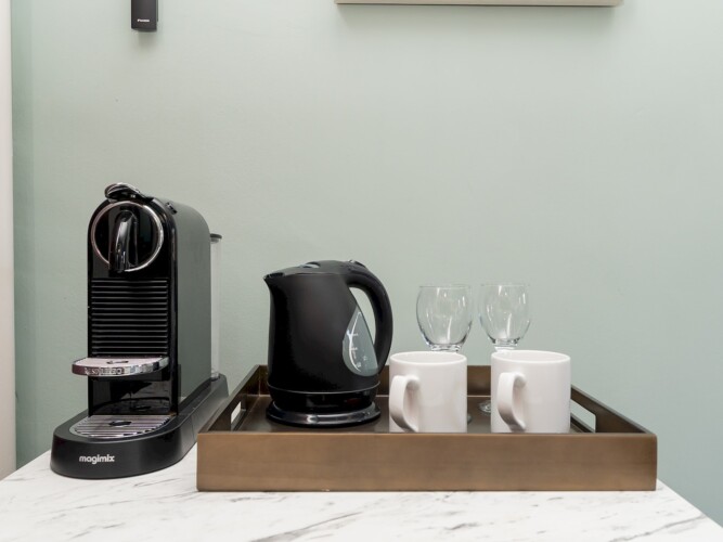 While the room includes a small fridge and a kettle there are no cooking facilities giving you the perfect excuse to take full advantage of the fantastic cafes and restaurants right on your door stop.