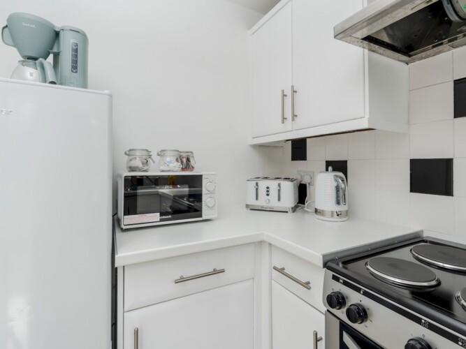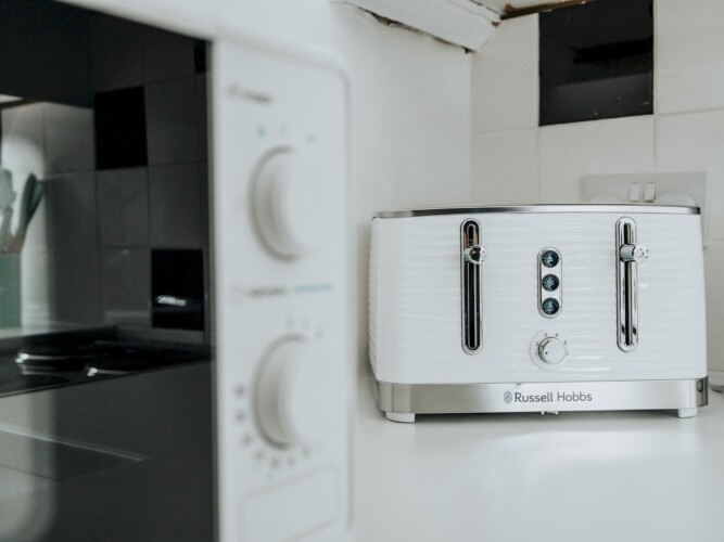 A bright, fully-equipped kitchen with all the essentials for home cooking