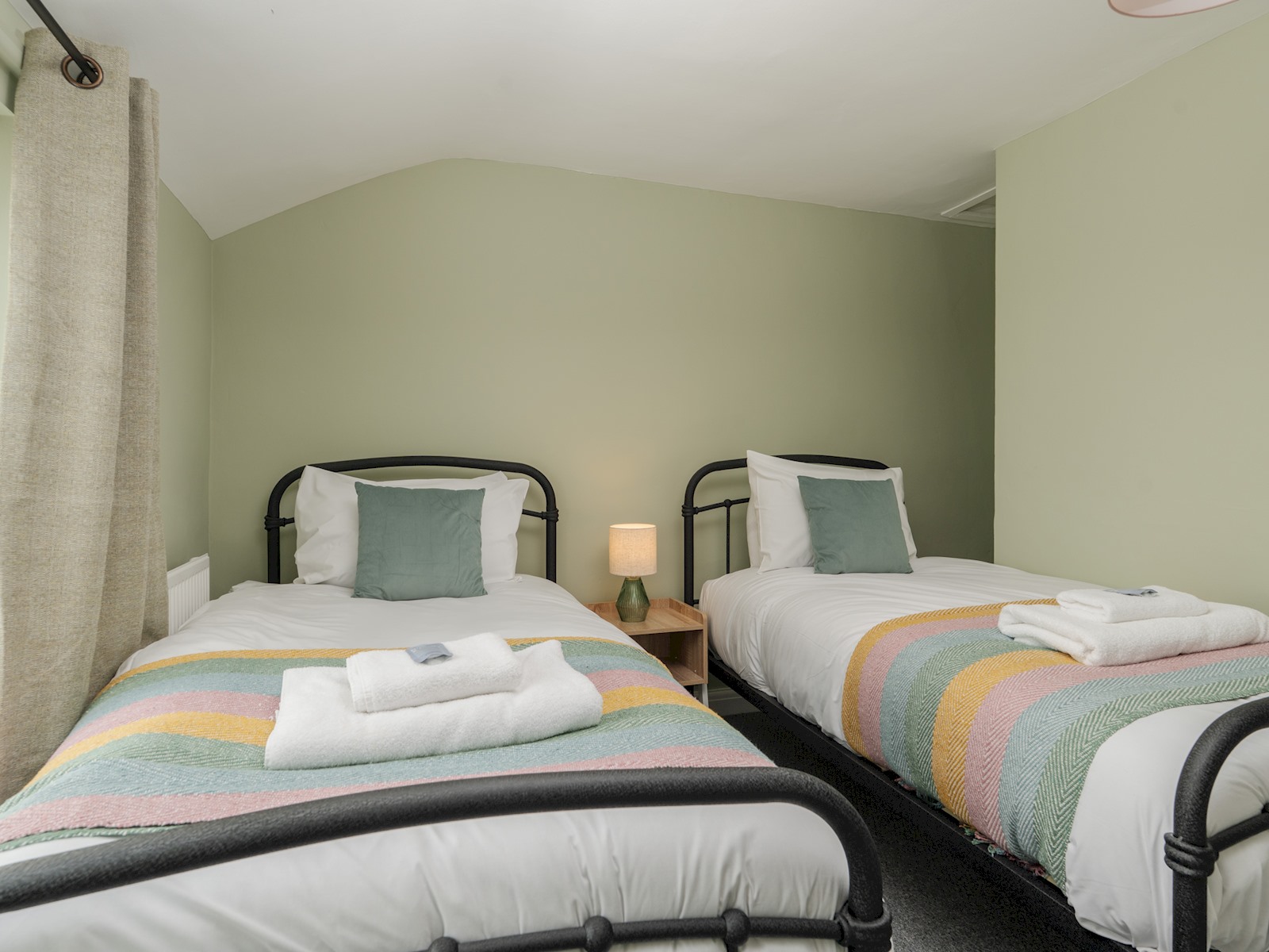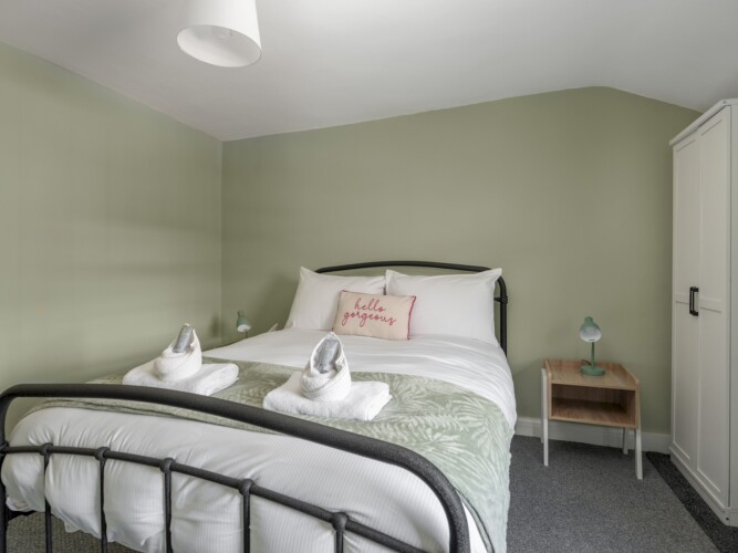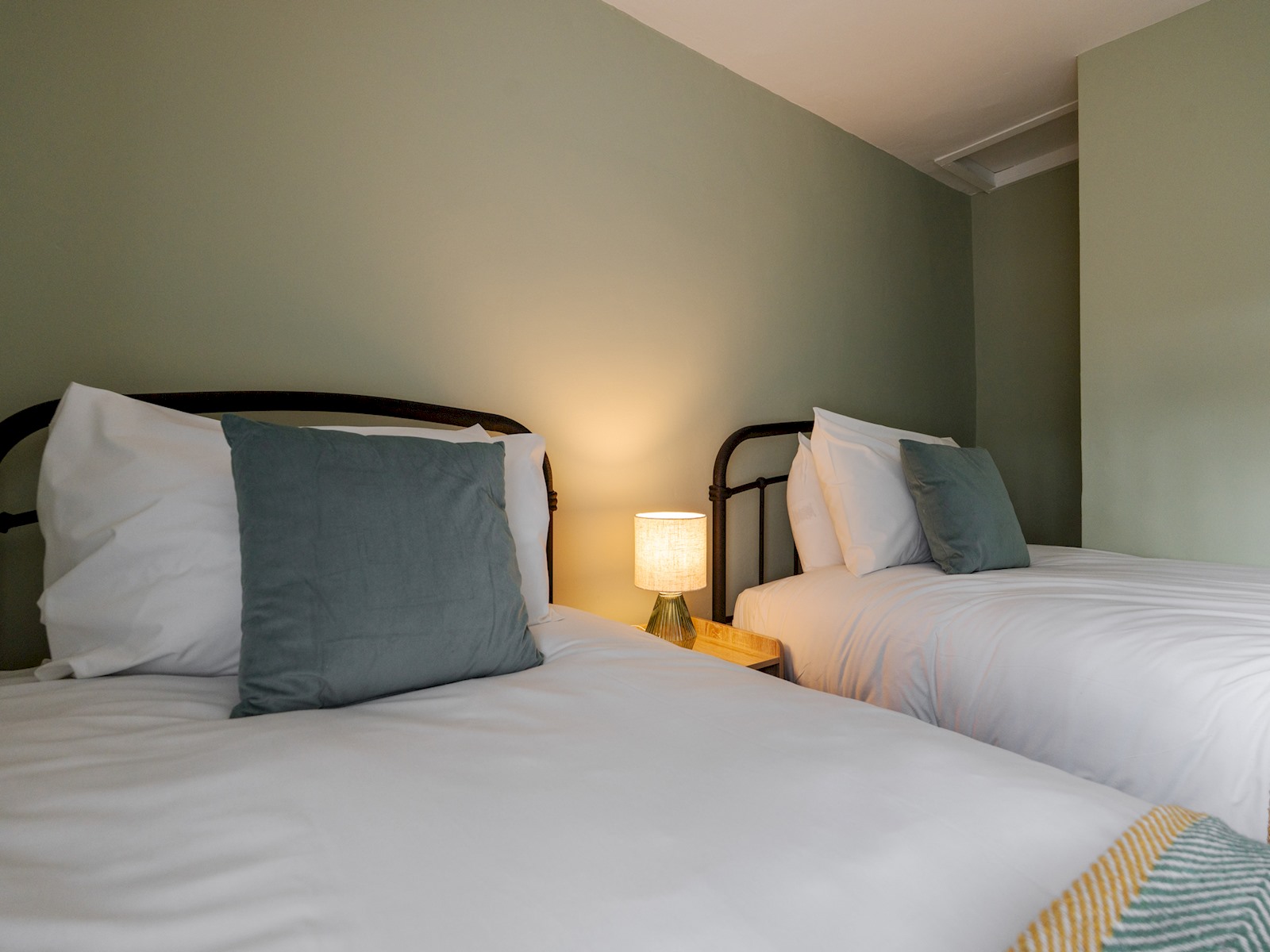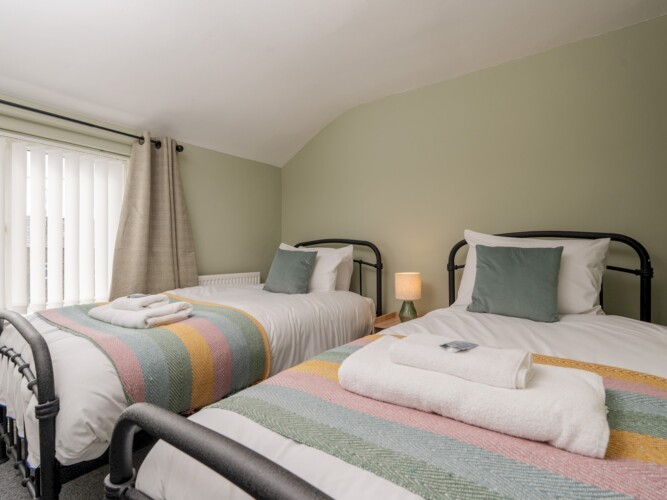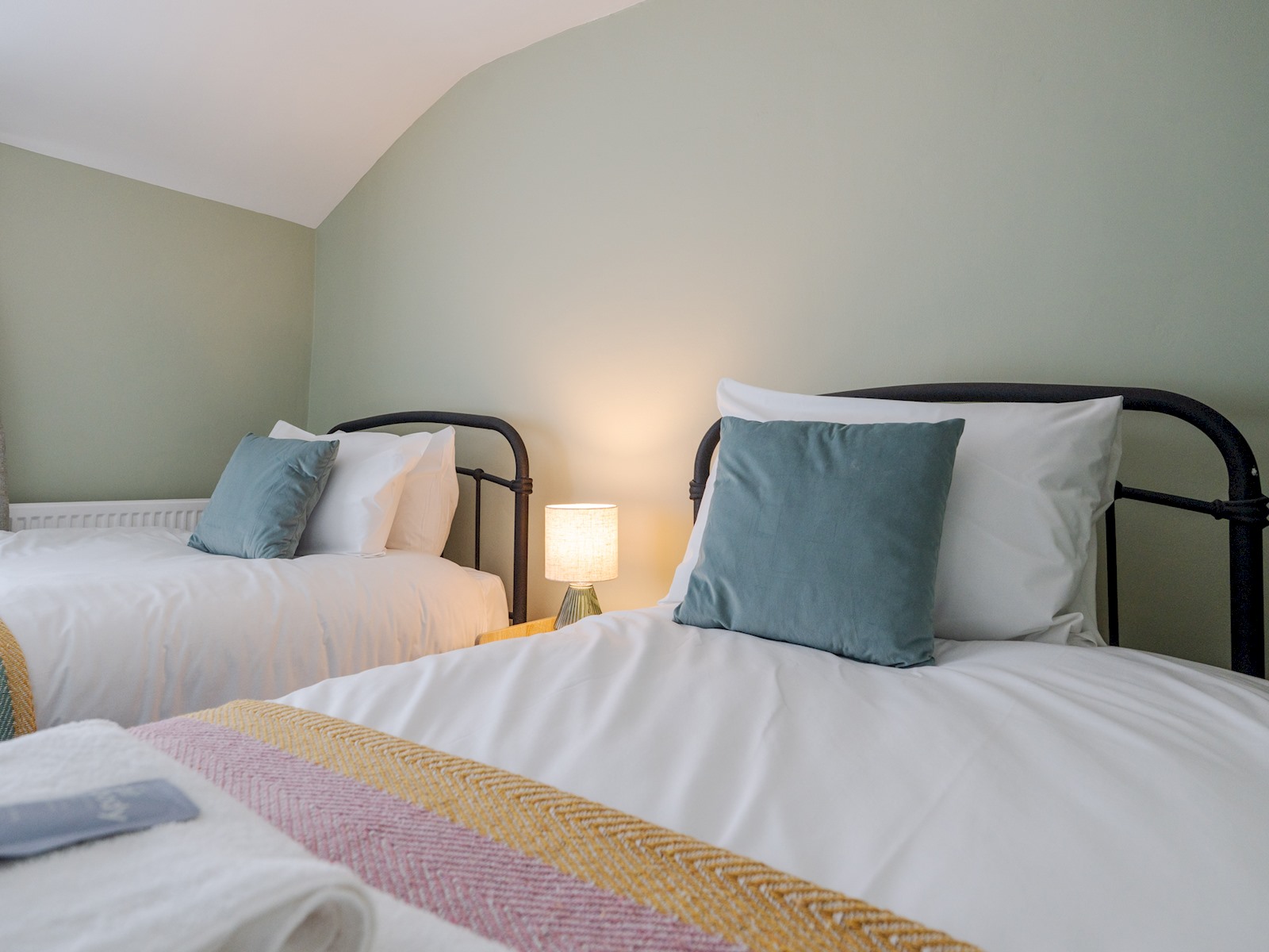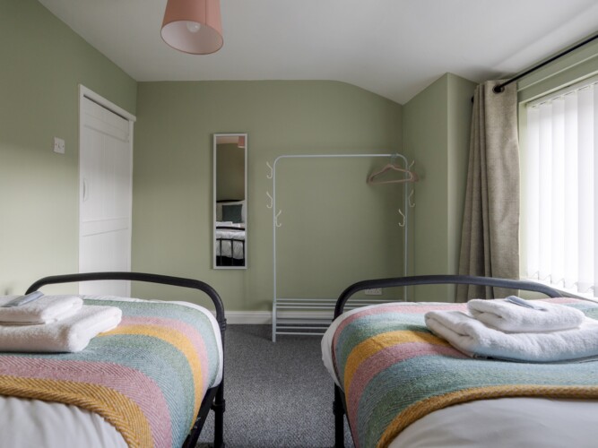 Two bedrooms – one with a double bed, and the second with two singles – ideal for families or sharing guests