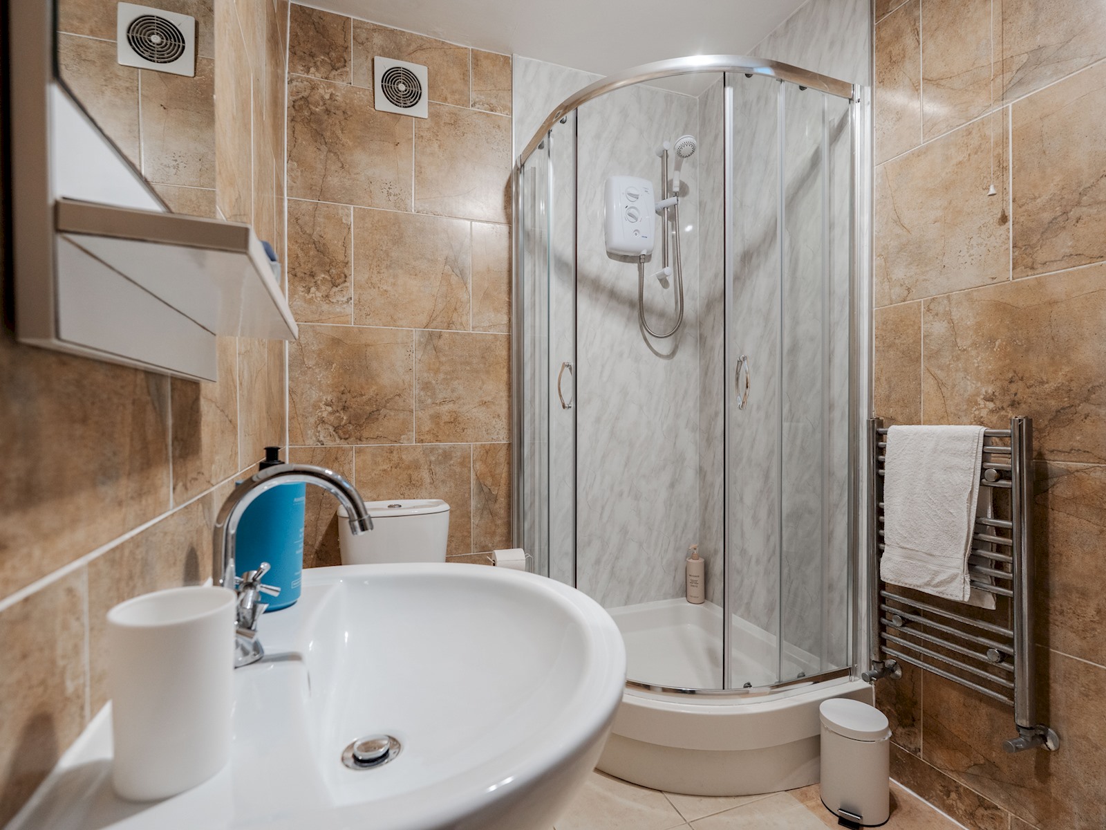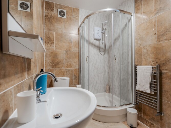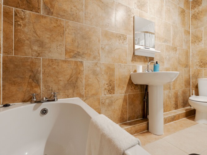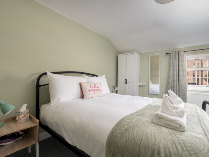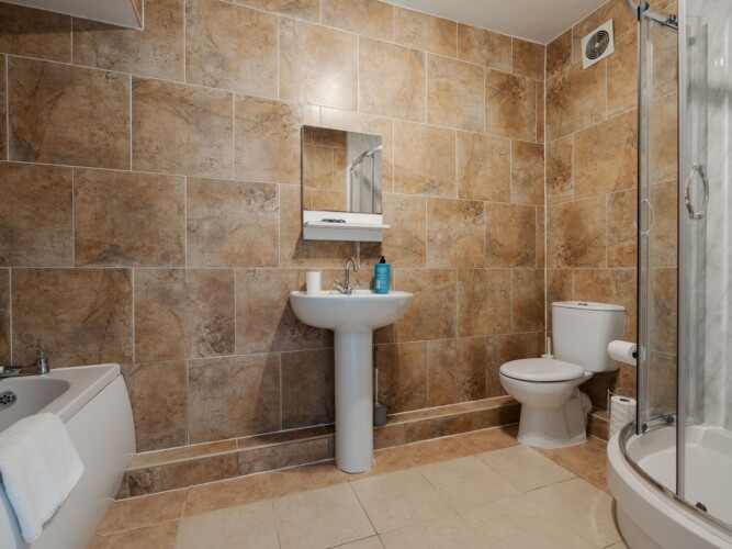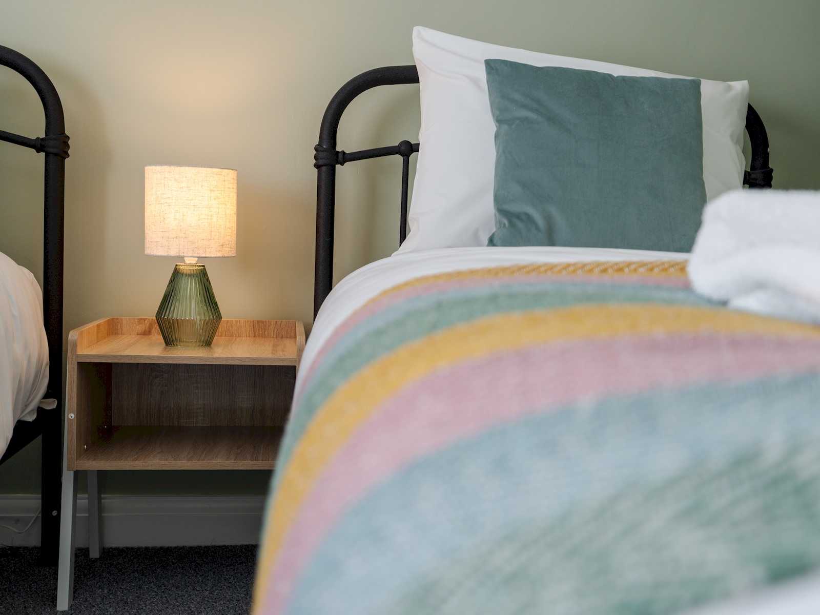 Two bedrooms – one with a double bed, and the second with two singles – ideal for families or sharing guests