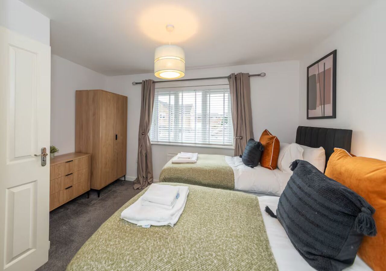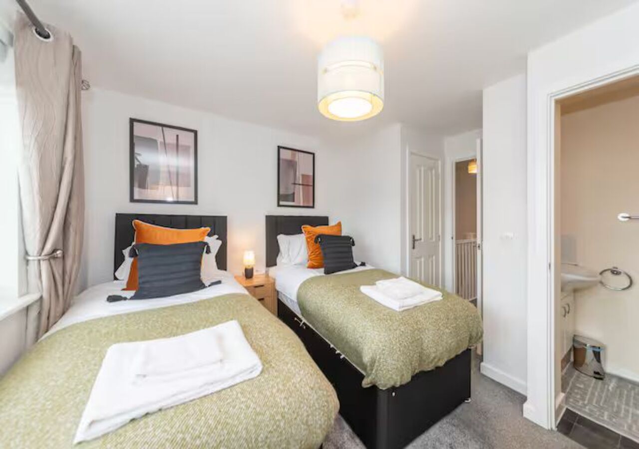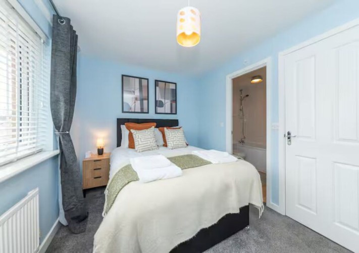 Modern, cosy home in Tilehurst, Reading, perfect for families, professionals or contractors. Fully equipped kitchen with dishwasher & washing machine, comfy living room with TV & fast broadband, downstairs toilet, and two ensuite bedrooms (one double, one twin). Enjoy the private decking garden. Includes one off-street parking space plus easy nearby parking. Great access to local shops, transport & Reading town centre.