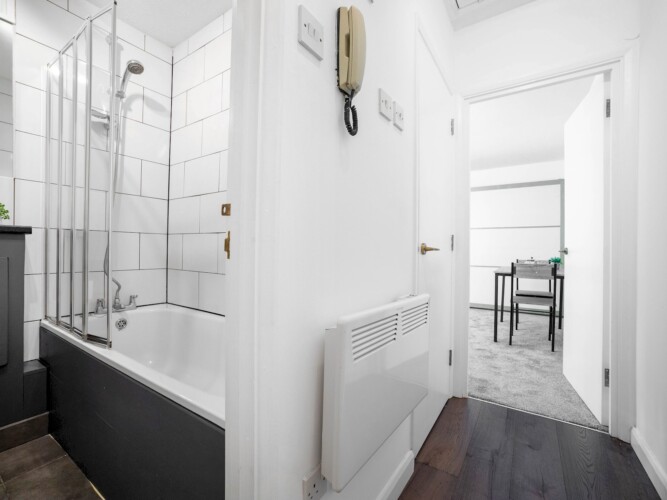 As you enter the apartment, you’ll be greeted by a fully working bathroom with all the amenities you need to freshen up after a day of exploring the city. The contemporary design and cleanliness ensure a relaxing experience during your stay.