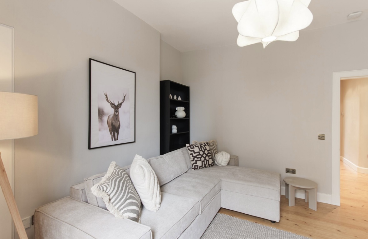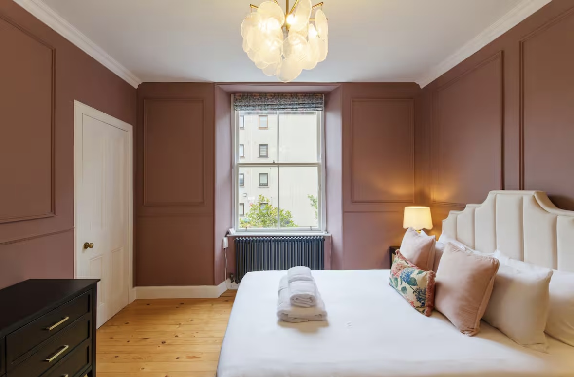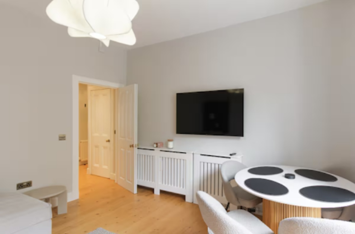 Set in a vibrant Edinburgh neighbourhood, this beautifully styled one-bedroom apartment offers a calm, comfortable base just minutes from Leith Walk and the city centre. Featuring a luxurious king bedroom, elegant living space with sofa bed, and a modern kitchen, it’s ideal for couples, solo travellers or small families looking to explore Edinburgh with ease and comfort.