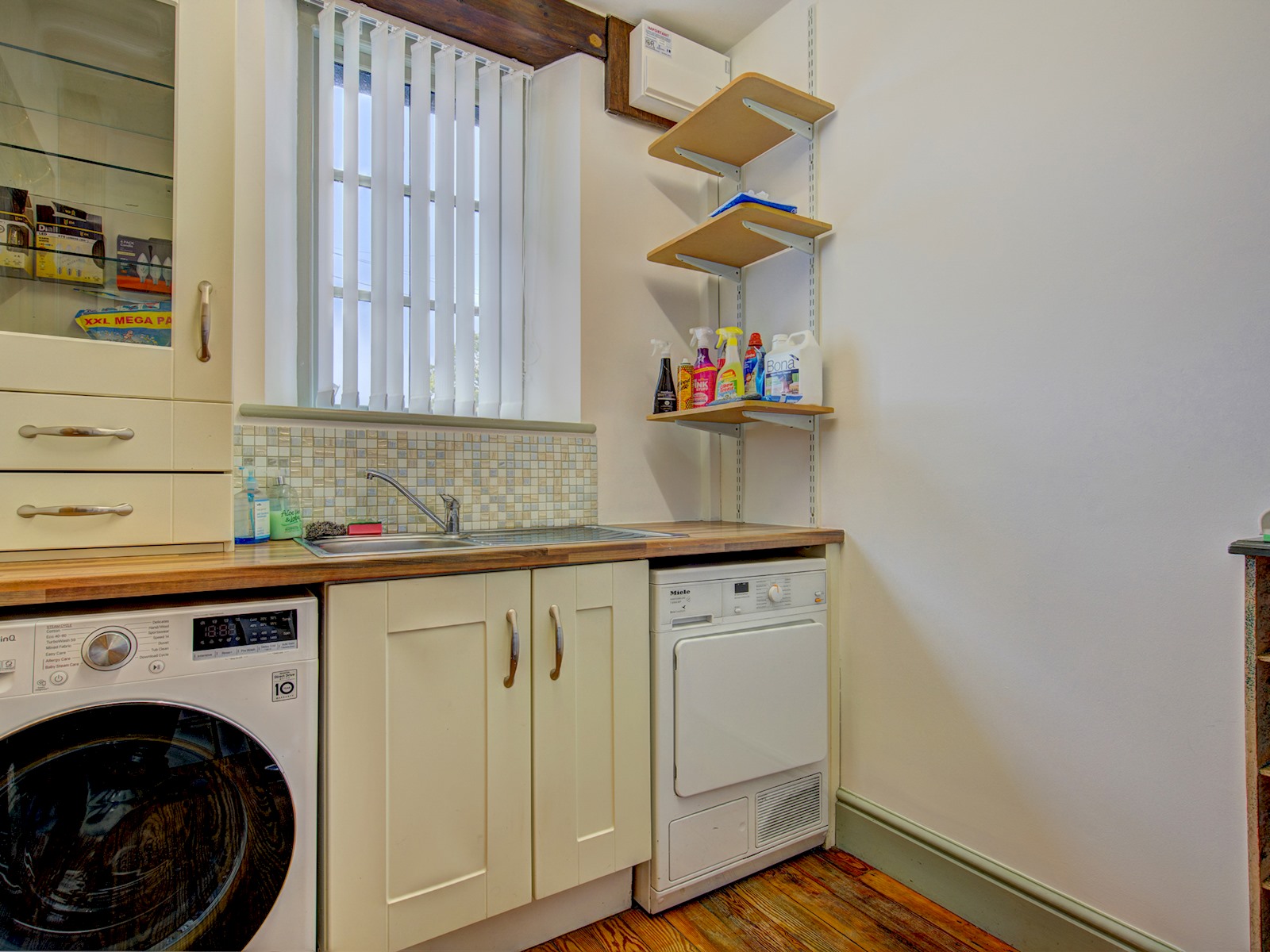 Heating controlled via thermostats in the hall and back lounge
