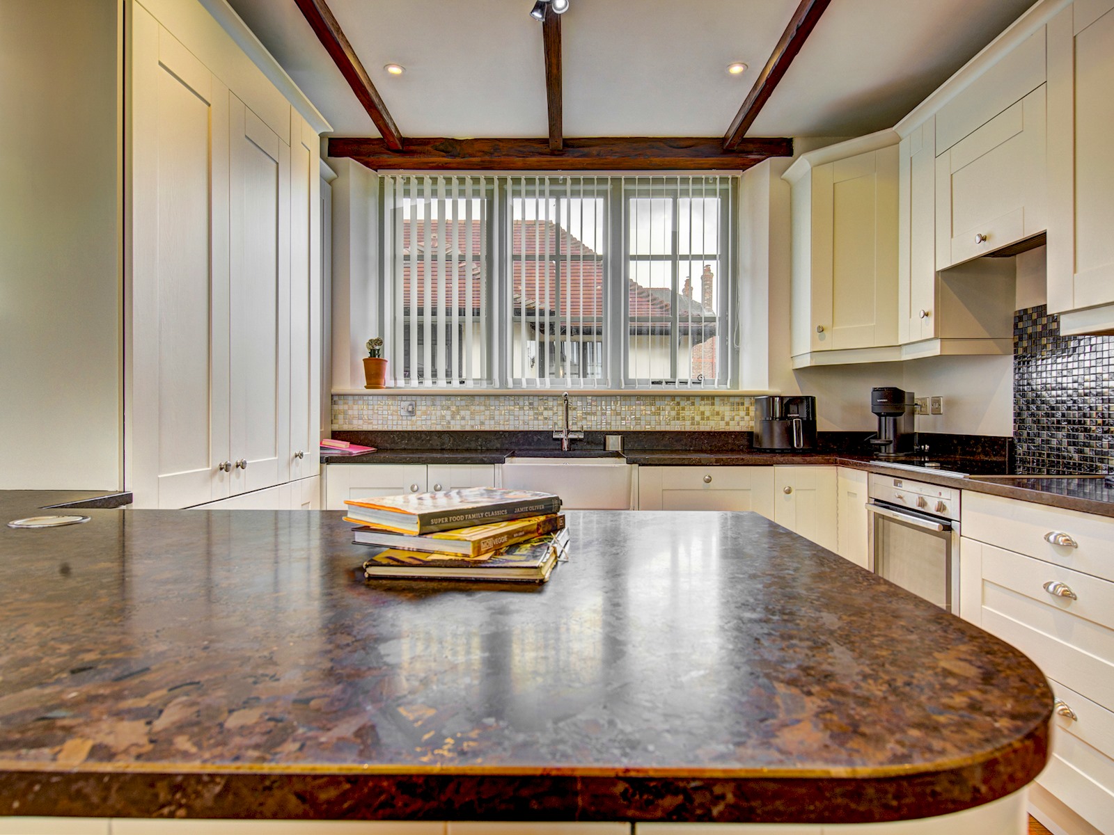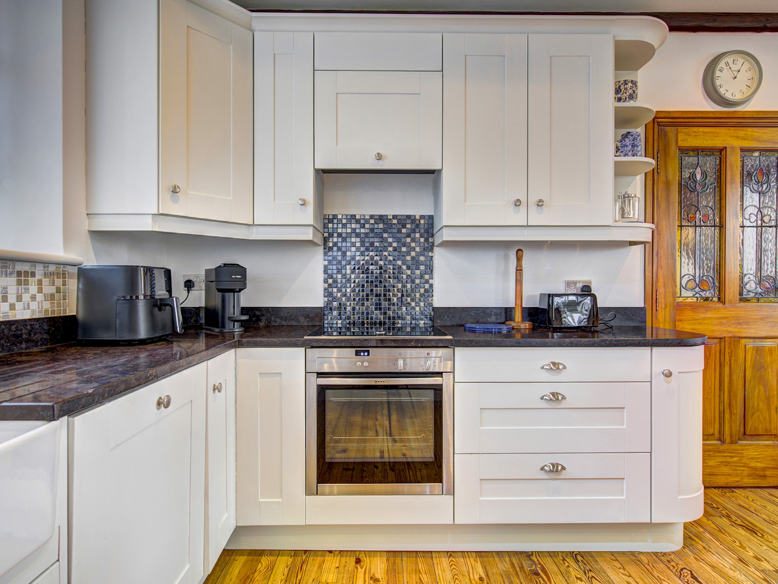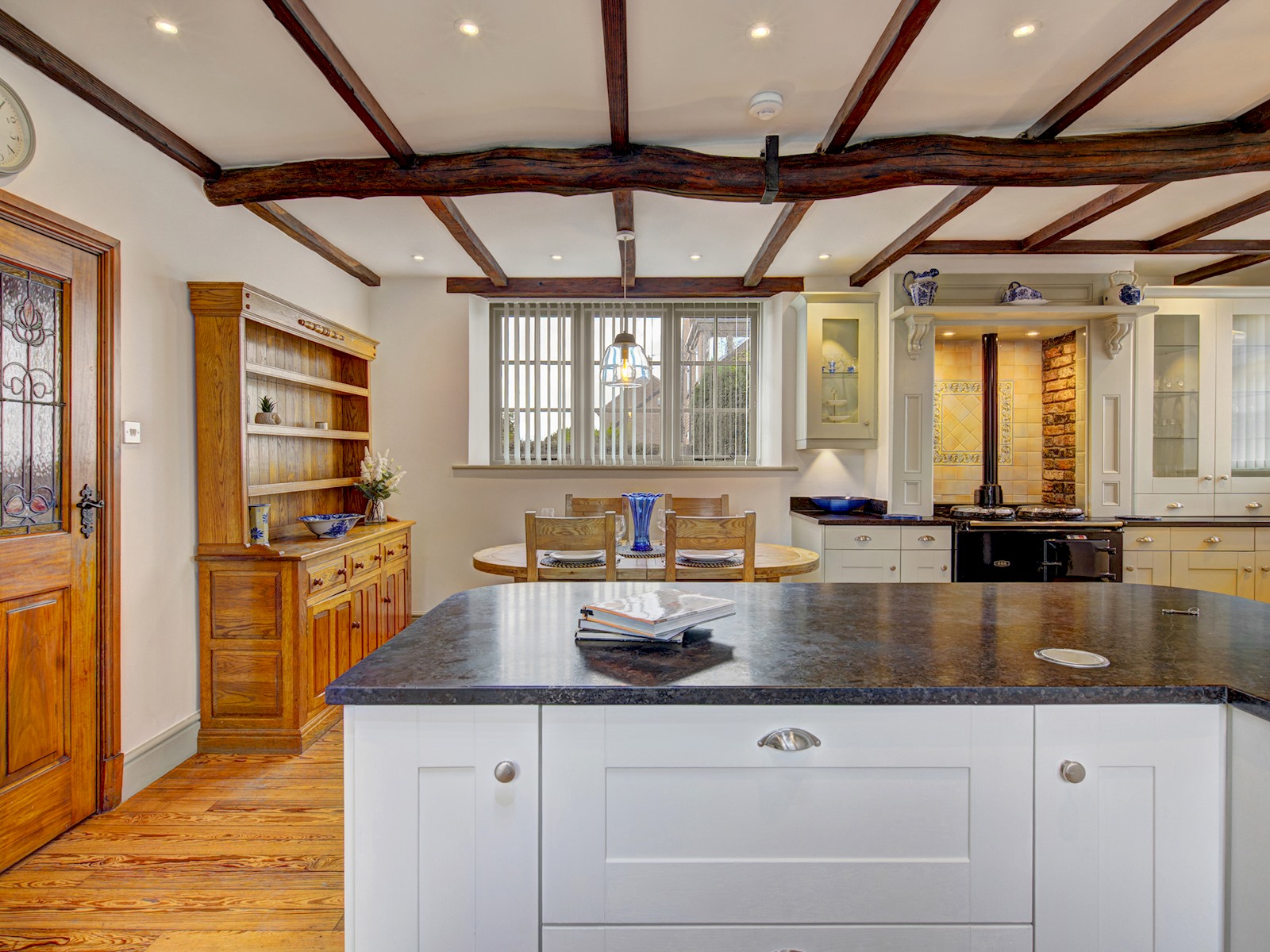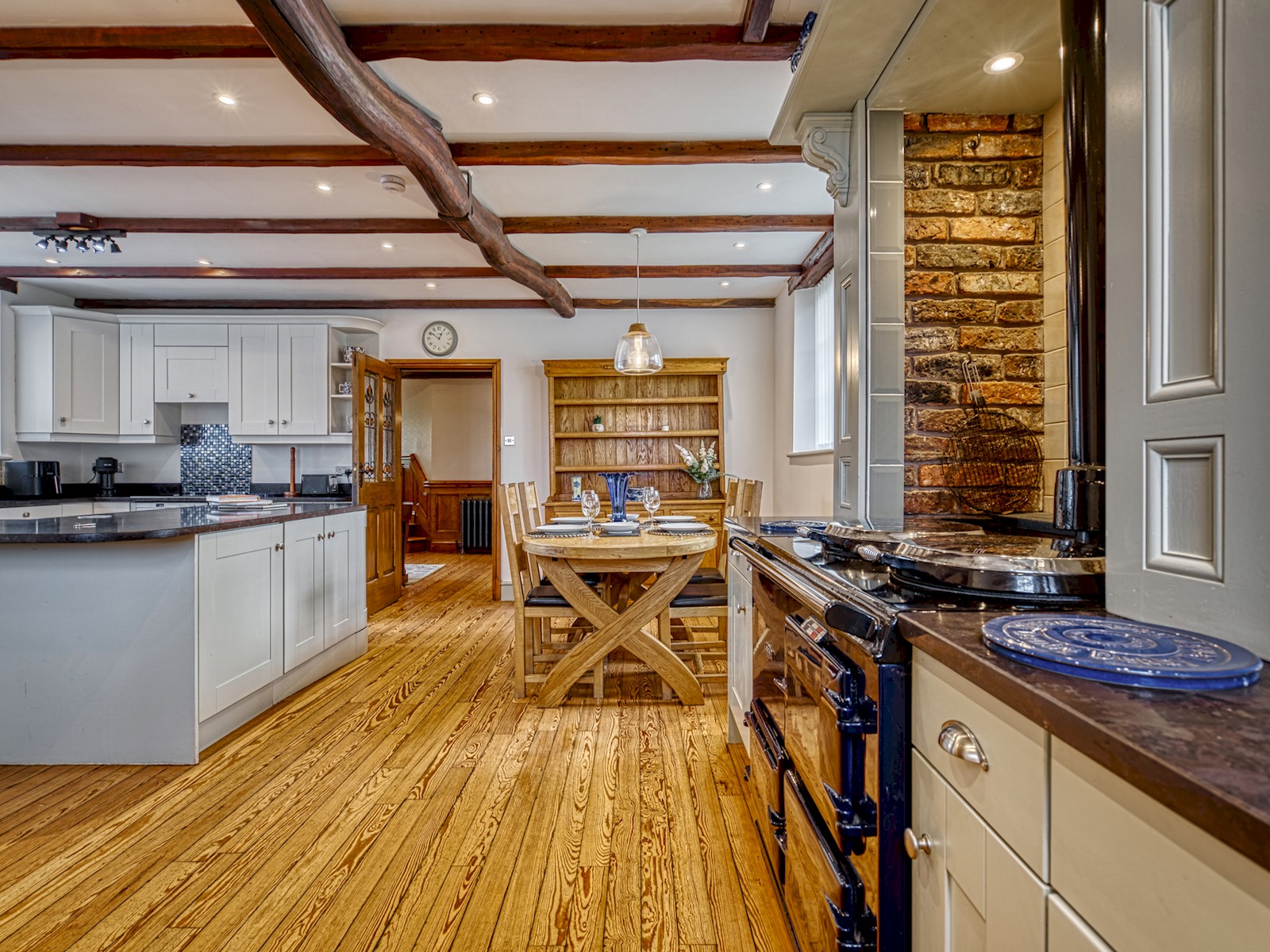 Fully equipped kitchen with Aga, Neff Bake-off oven, dishwasher, microwave, toaster, kettle and all essentials