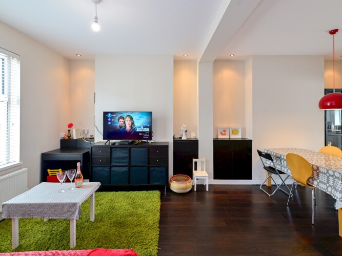 Situated in a quiet residential street, this 2-bedroom house is perfect for families or groups looking to relax in comfort while staying close to the heart of the city. Step inside to a stylish open-plan living and dining space with a Smart TV and comfortable seating – ideal for movie nights or relaxing after a day of exploring.