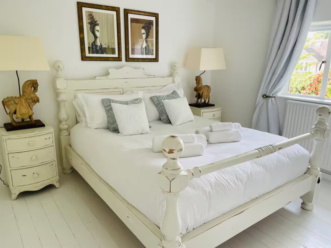 Escape to our charming 3-bed designer cottage in the peaceful West End of Esher. Enjoy a spacious garden, calm interiors, and a bright lounge perfect for relaxing. The fully equipped kitchen overlooks the garden, and upstairs you’ll find two king bedrooms and a cosy single room. Family bathroom. Perfect English cottage. Walk to Garsons Farm and local pubs, or reach Sandown Racecourse and Esher Village in minutes. You are all welcome for a perfect well managed stay, choose our Cottage