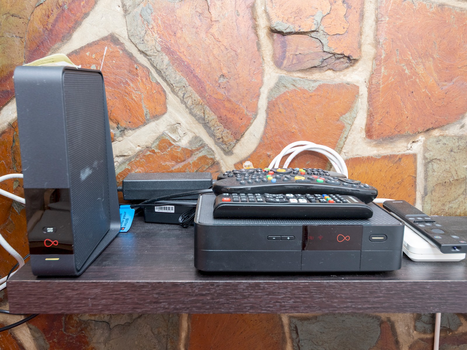 A comfortable living area with sofas, coffee table, 65-inch smart TV, and free Wi-Fi.