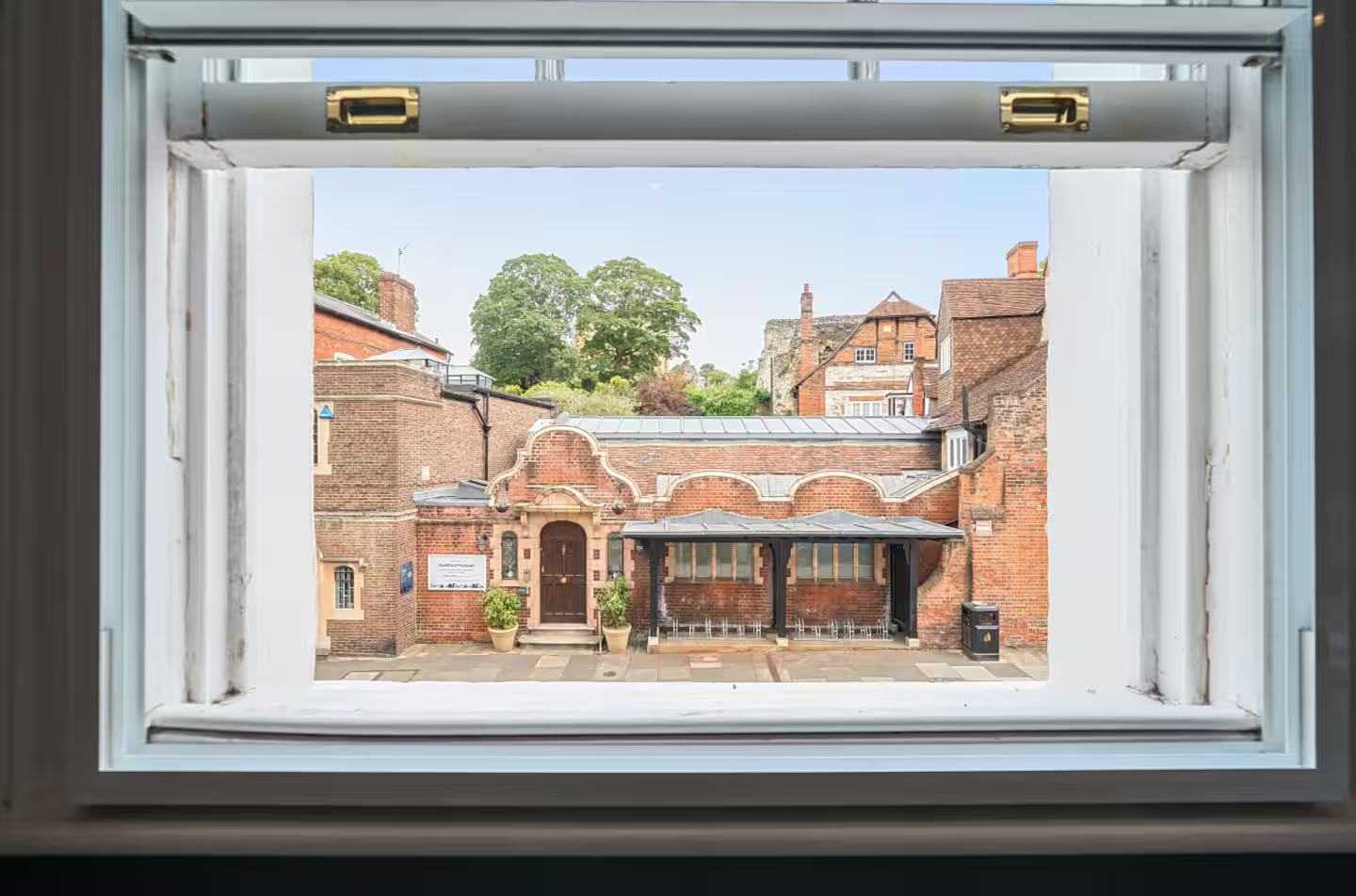 One of the standout features of this home is the charming view of Guildford Castle and the historic Guildford Museum, perfectly framed through several sash windows.