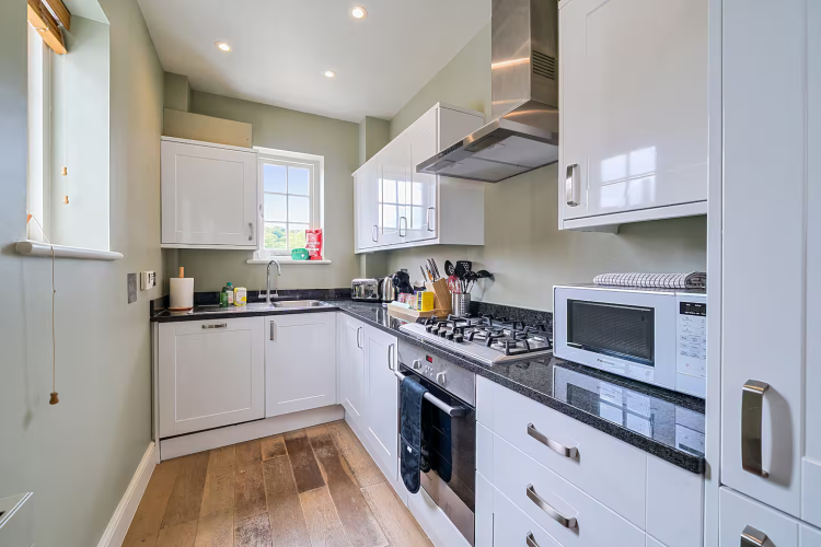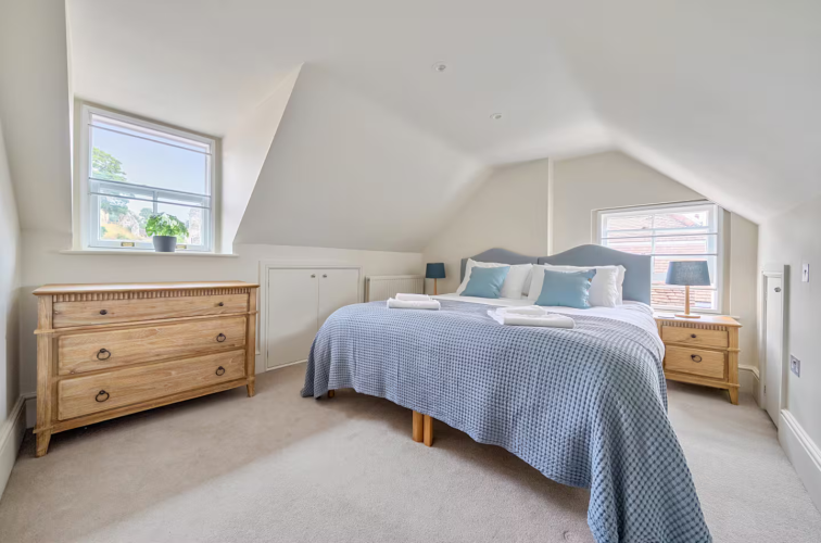 Set under charming sloped ceilings with dual aspect windows overlooking Guildford’s rooftops and castle views.