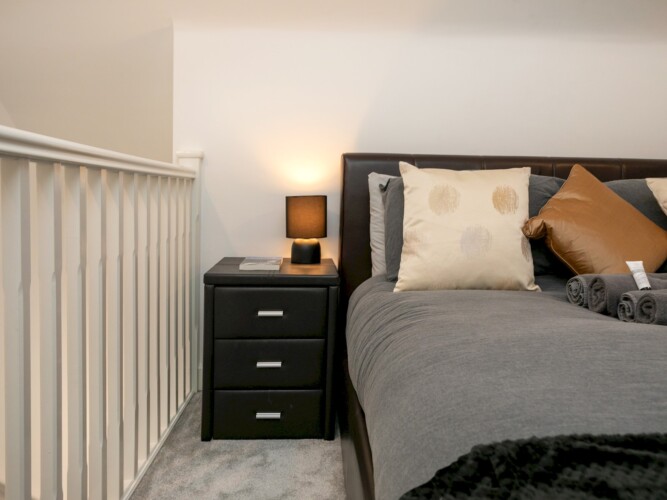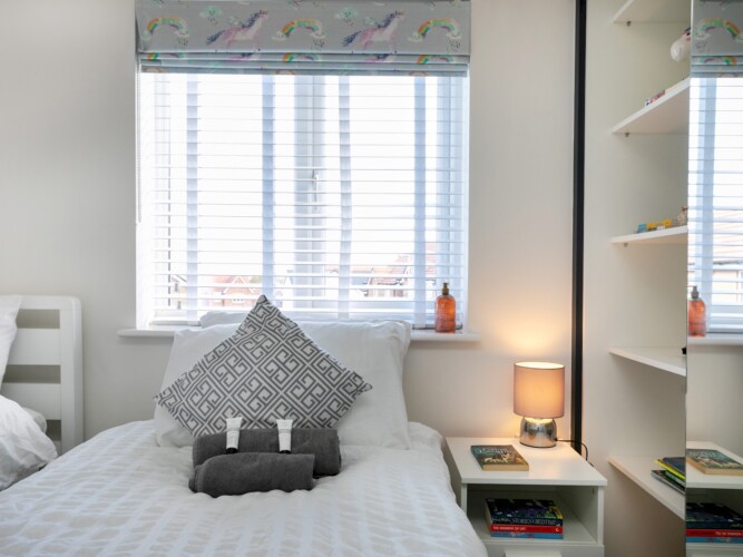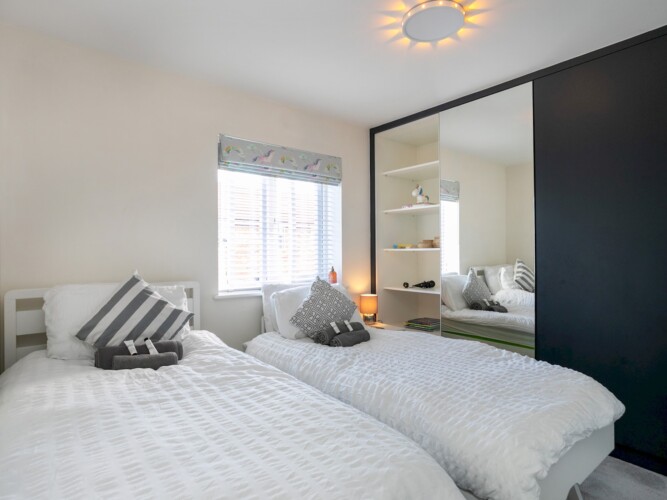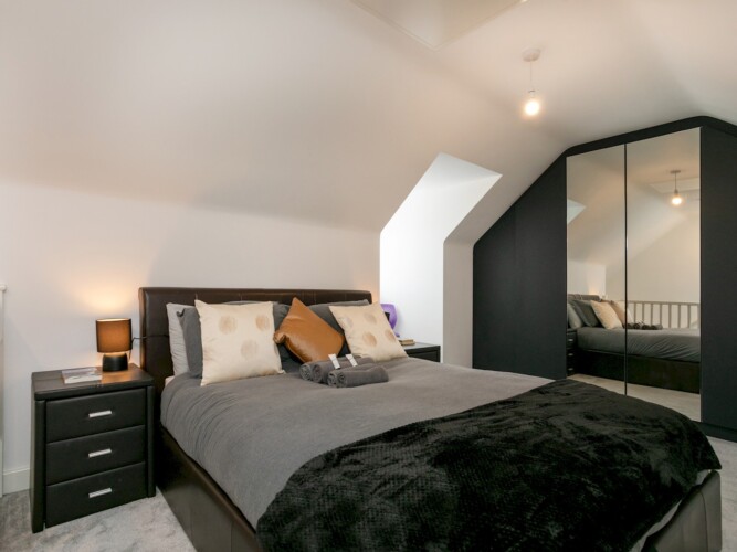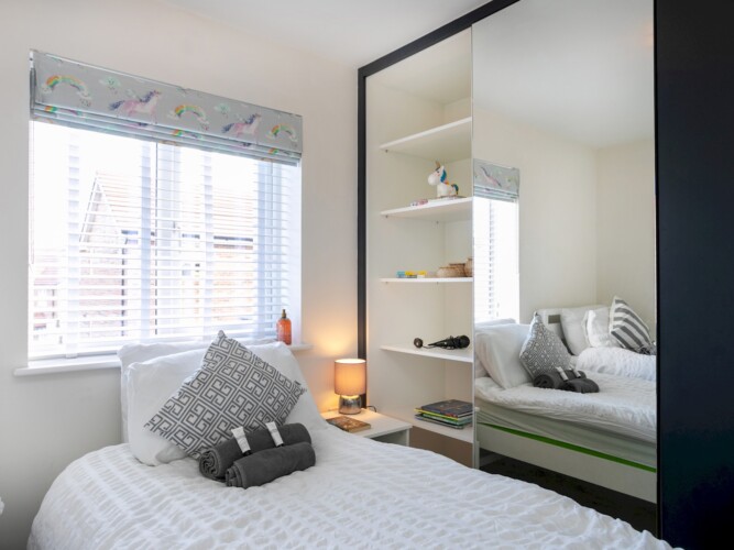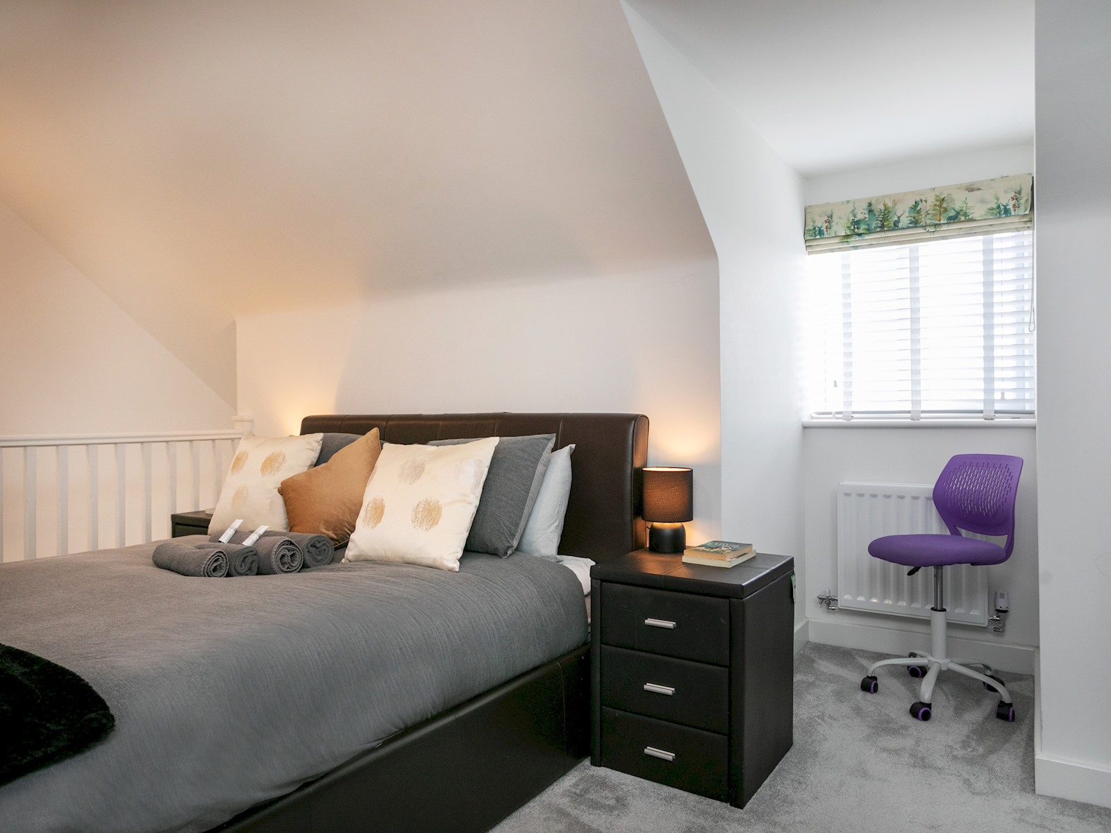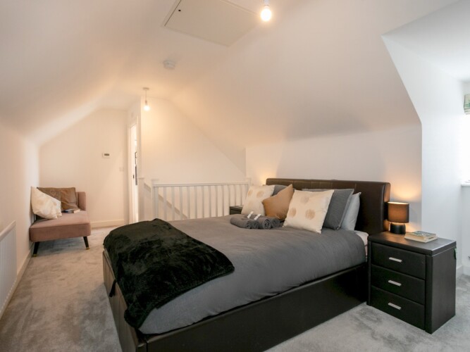 Climb to the top floor, and you’ll find your private sanctuary — the master bedroom. This calm retreat features a king-size bed, fitted wardrobes, and a sleek ensuite bathroom. Wake up to gentle morning light, open the window to let in a soft breeze, and start your day feeling completely recharged.