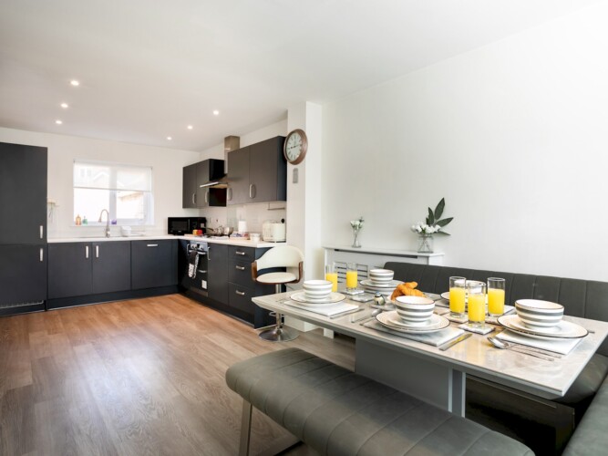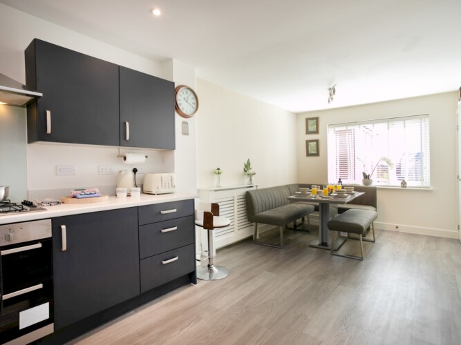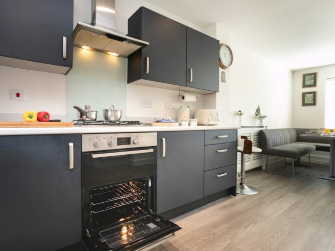 The kitchen is a dream for food lovers — fully equipped with an oven, hob, microwave, dishwasher, fridge/freezer, kettle, toaster, and pots, pans, and plates you might need. Whether it’s a family breakfast, a quick snack, or a home-cooked dinner, everything is ready for you.