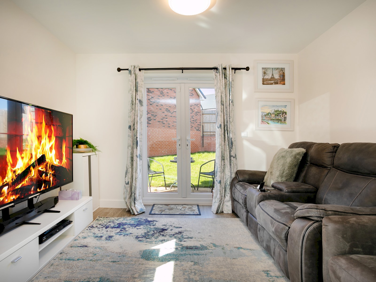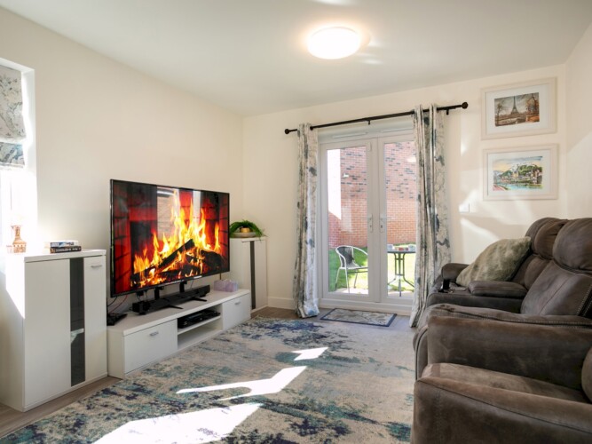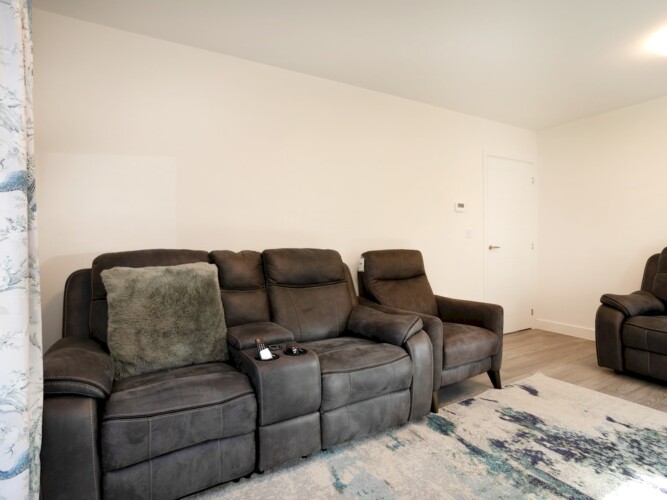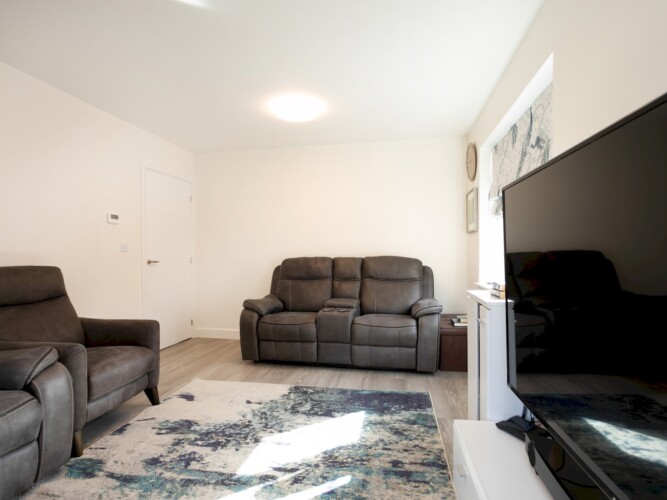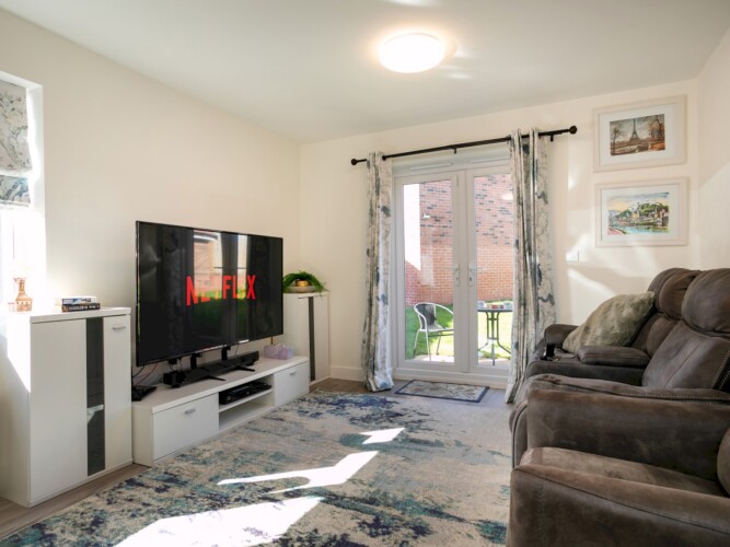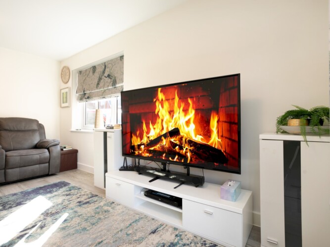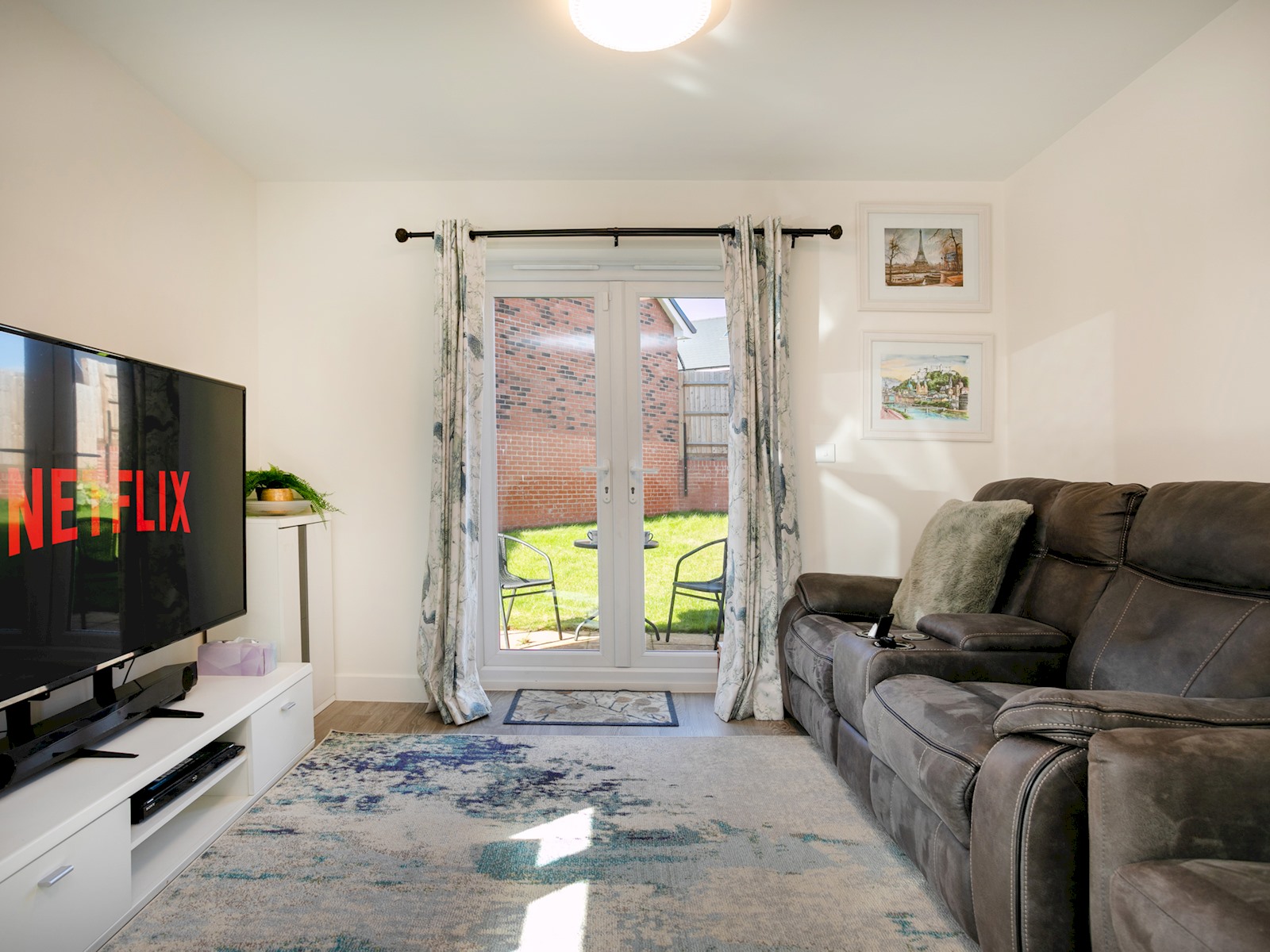 From the moment you step inside, the home flows with light and ease. The open-plan living and dining area forms the heart of the house — a place to gather, cook, and connect. The living room is warm and inviting, with plush seating, soft lighting, and an LG Smart TV featuring Netflix, Disney+, and Amazon Prime Video for those perfect movie nights.