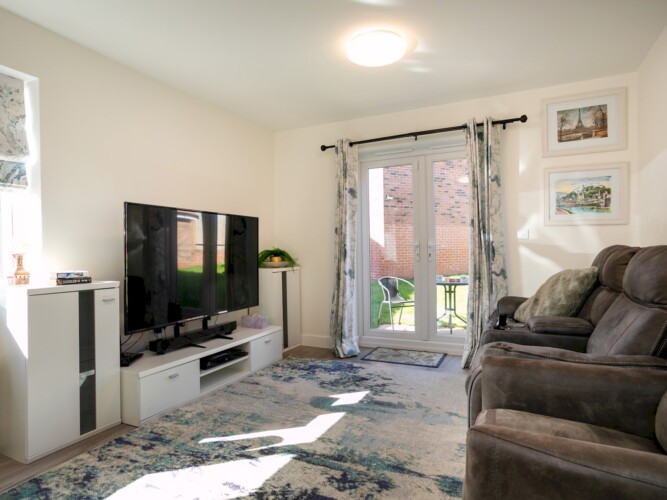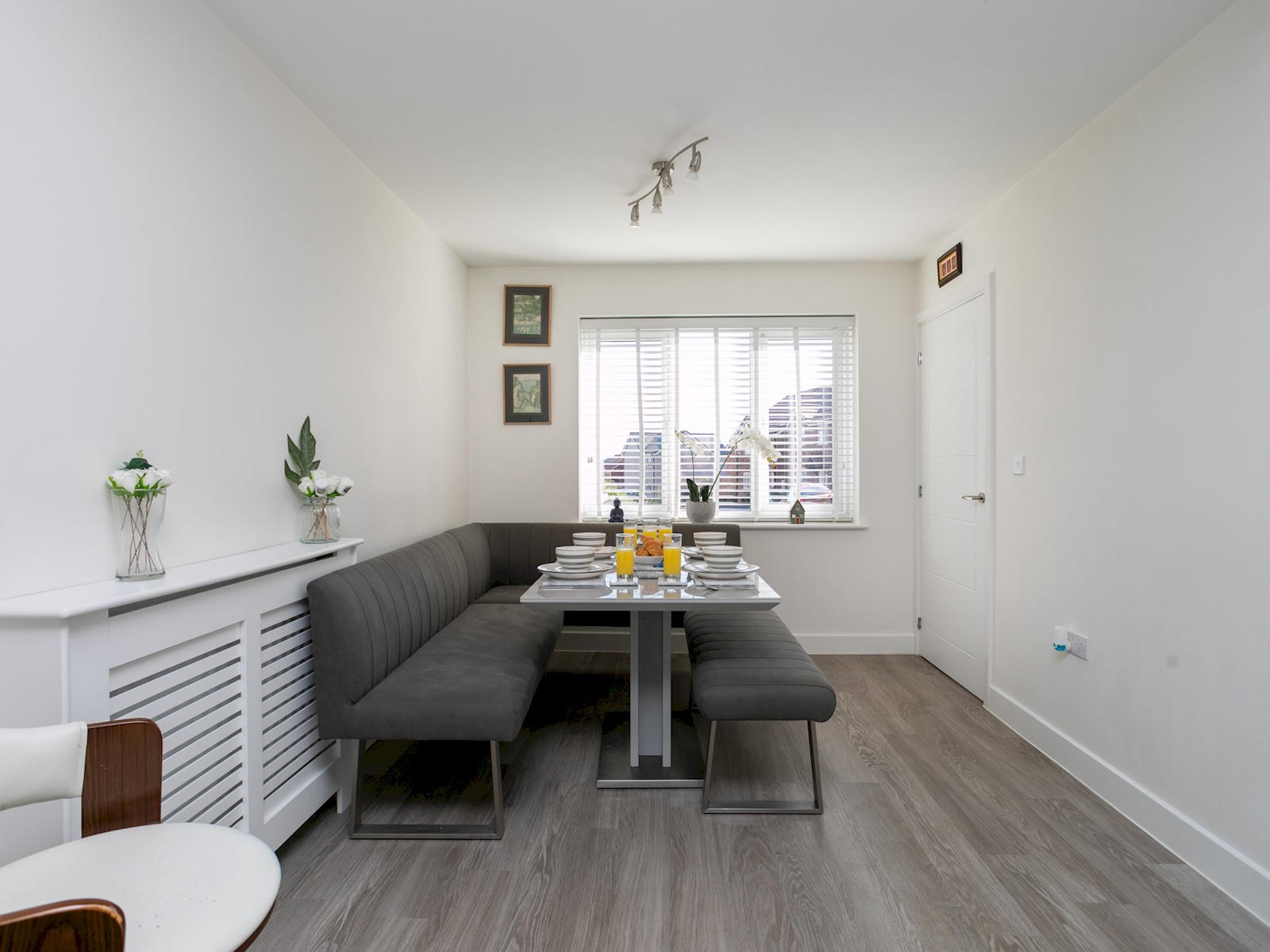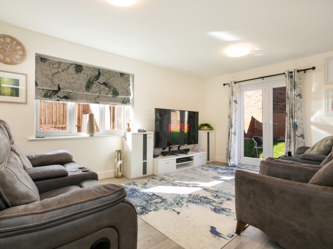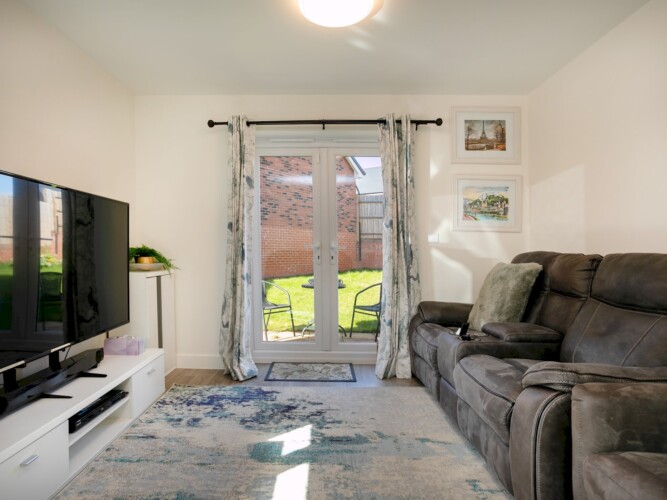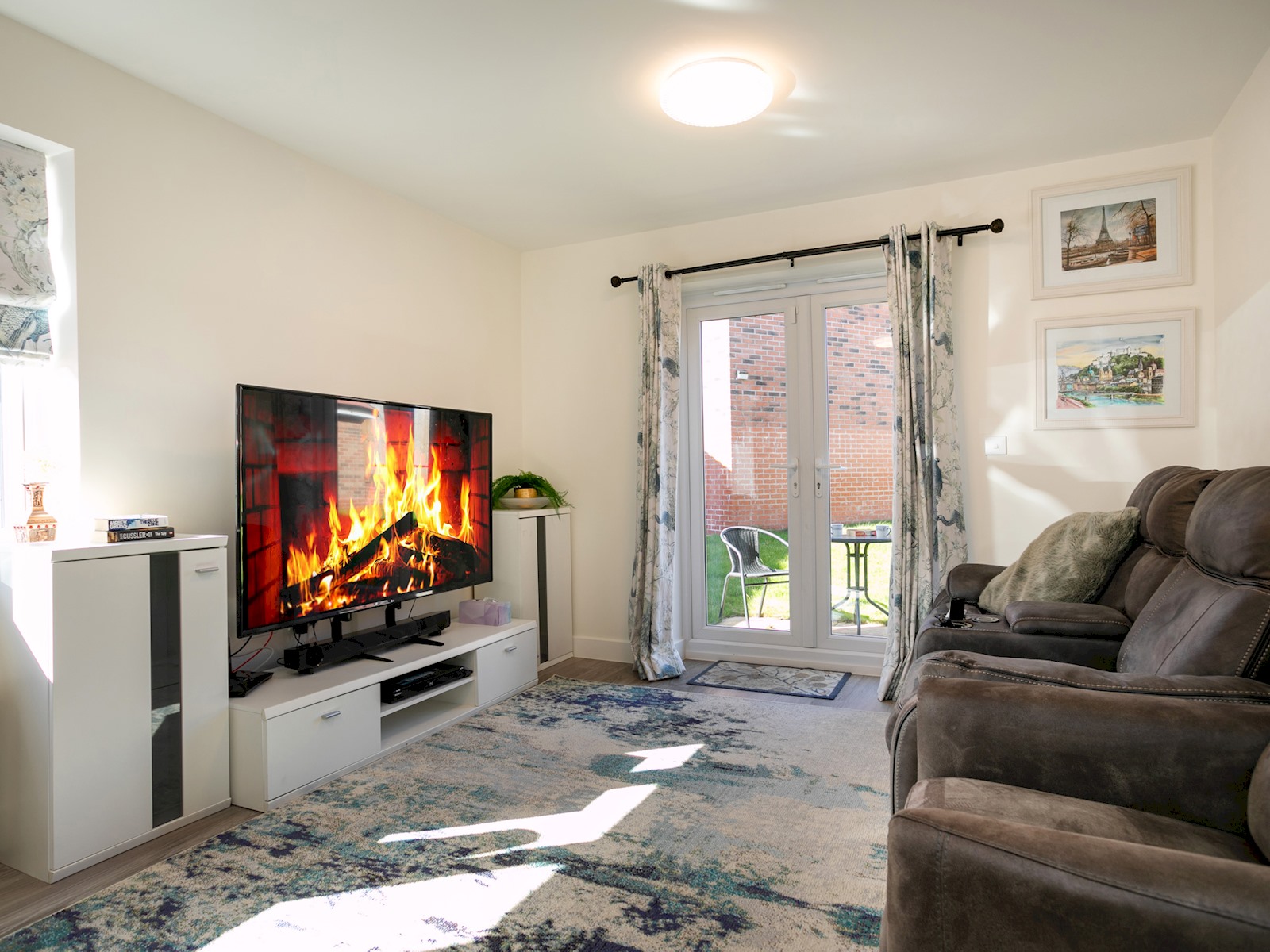 From the moment you step inside, the home flows with light and ease. The open-plan living and dining area forms the heart of the house — a place to gather, cook, and connect. The living room is warm and inviting, with plush seating, soft lighting, and an LG Smart TV featuring Netflix, Disney+, and Amazon Prime Video for those perfect movie nights.