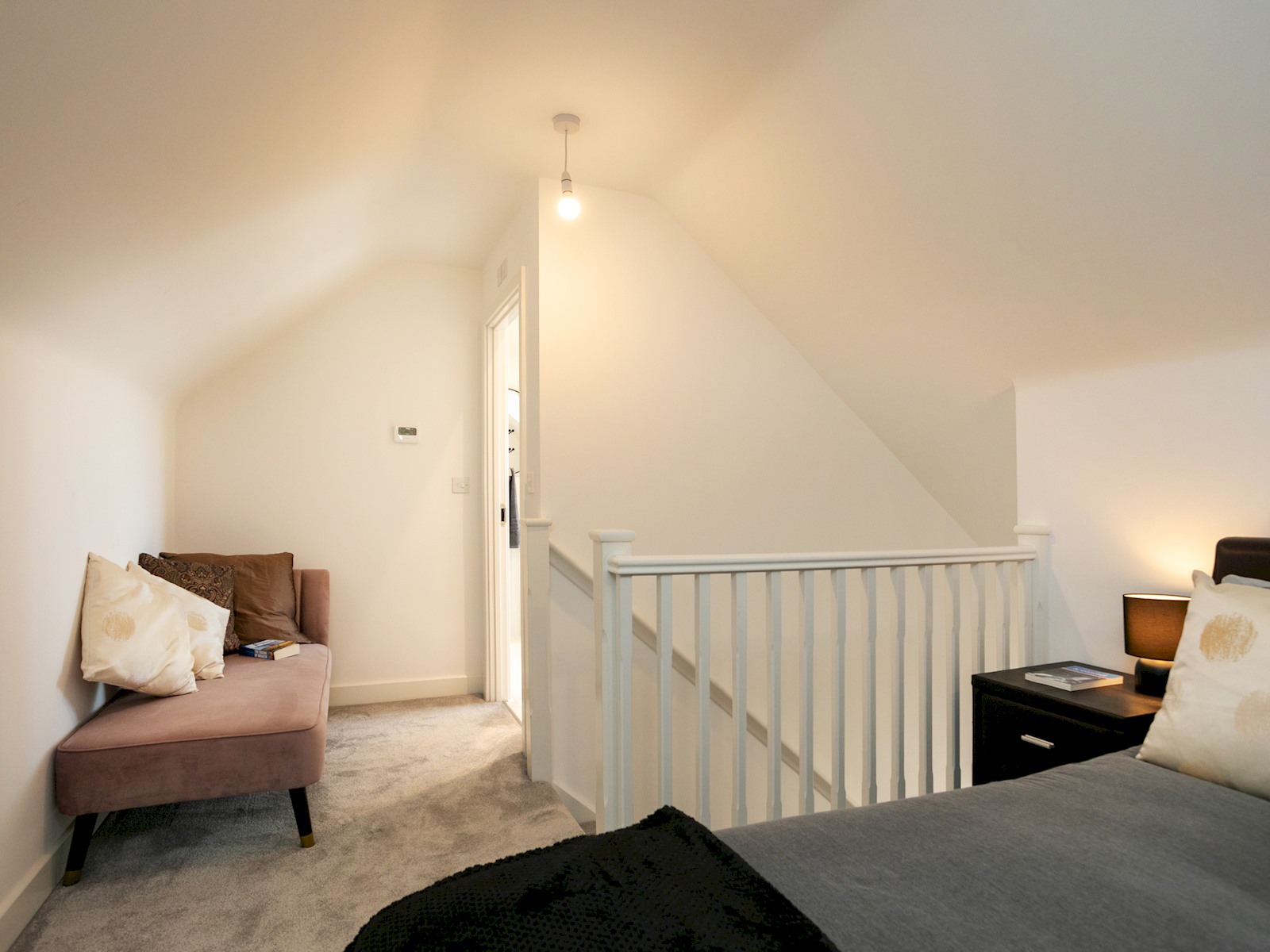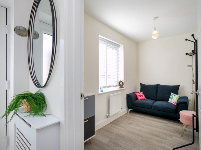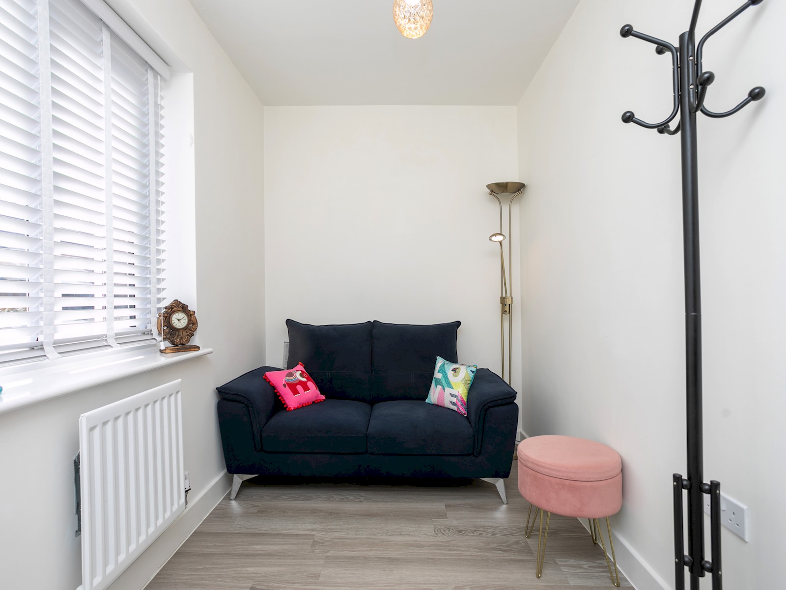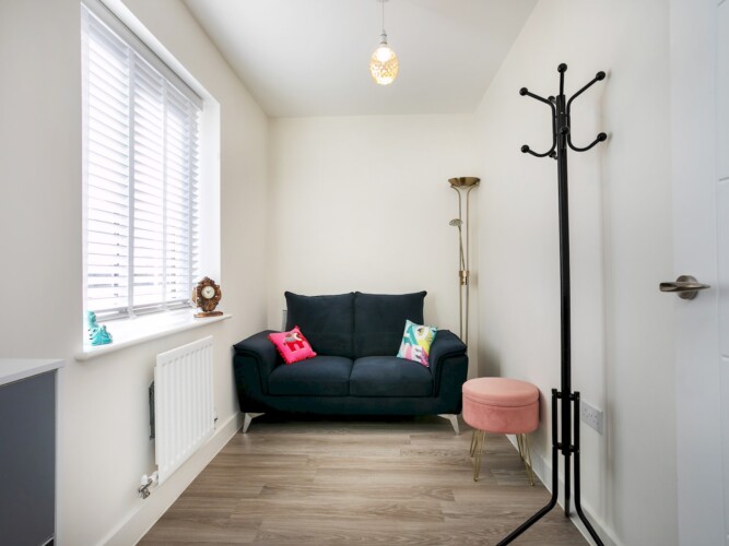 Just nearby, a cosy snug corner offers the perfect nook for quiet reading, tea breaks, or simply a mindful moment of calm.