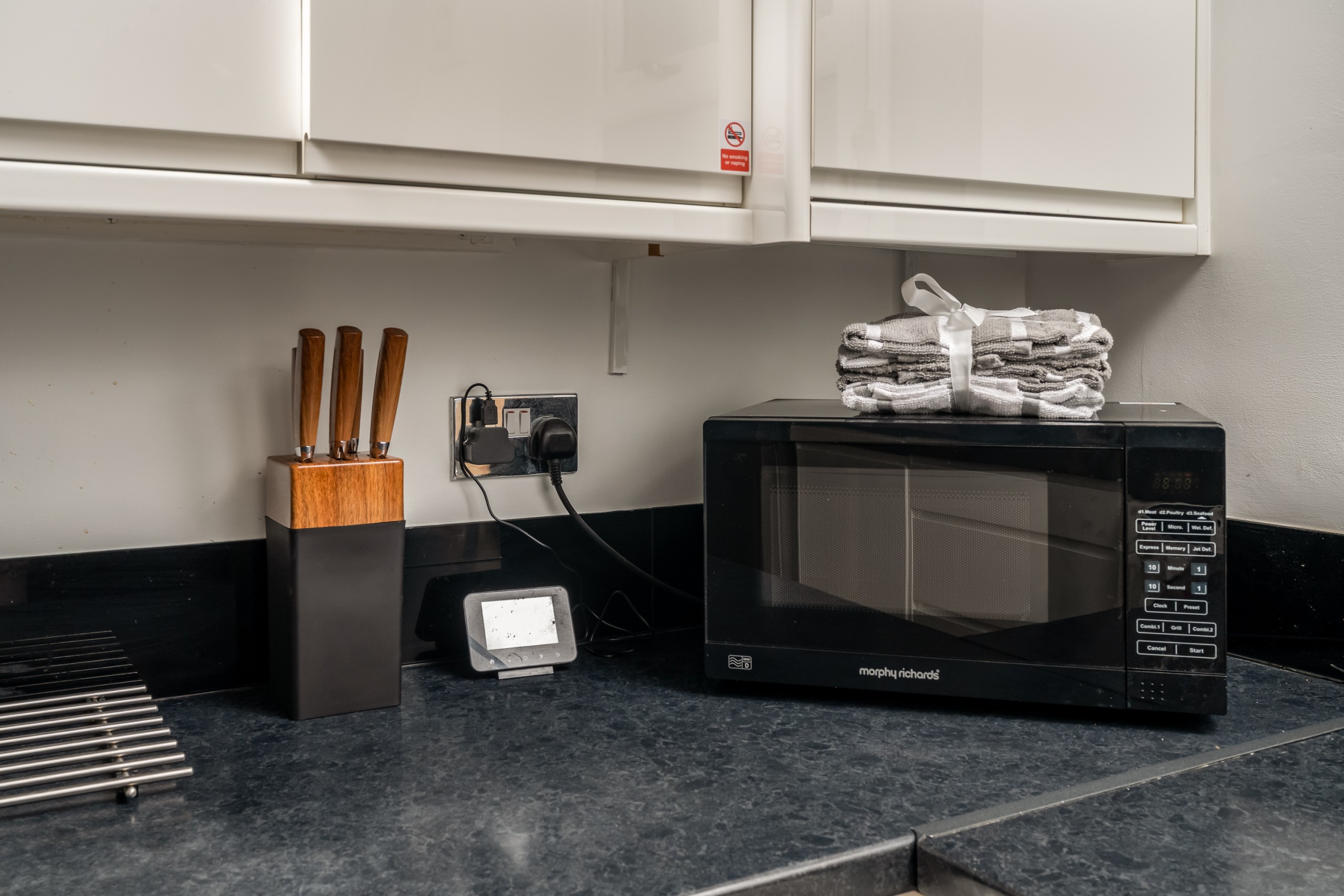 Modern kitchen with high-end appliances and all essentials to prepare home-cooked meals.