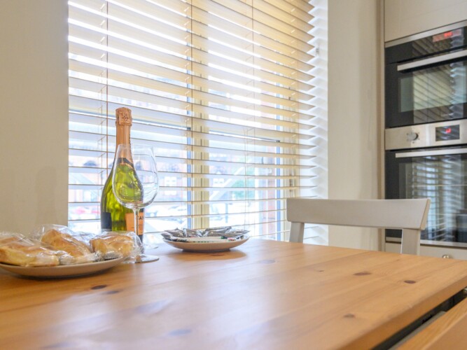 A fully equipped kitchen with everything you need to cook and dine.