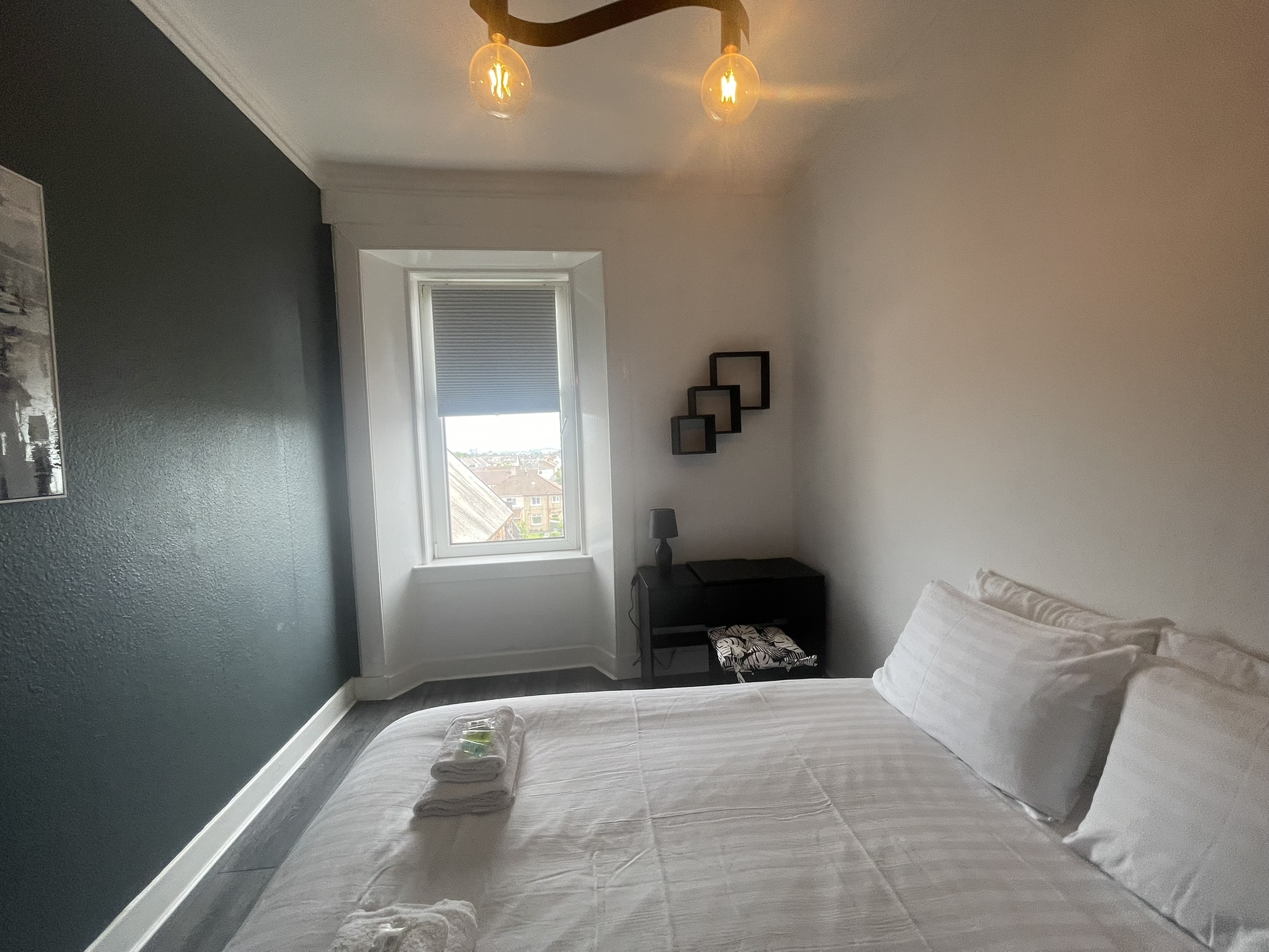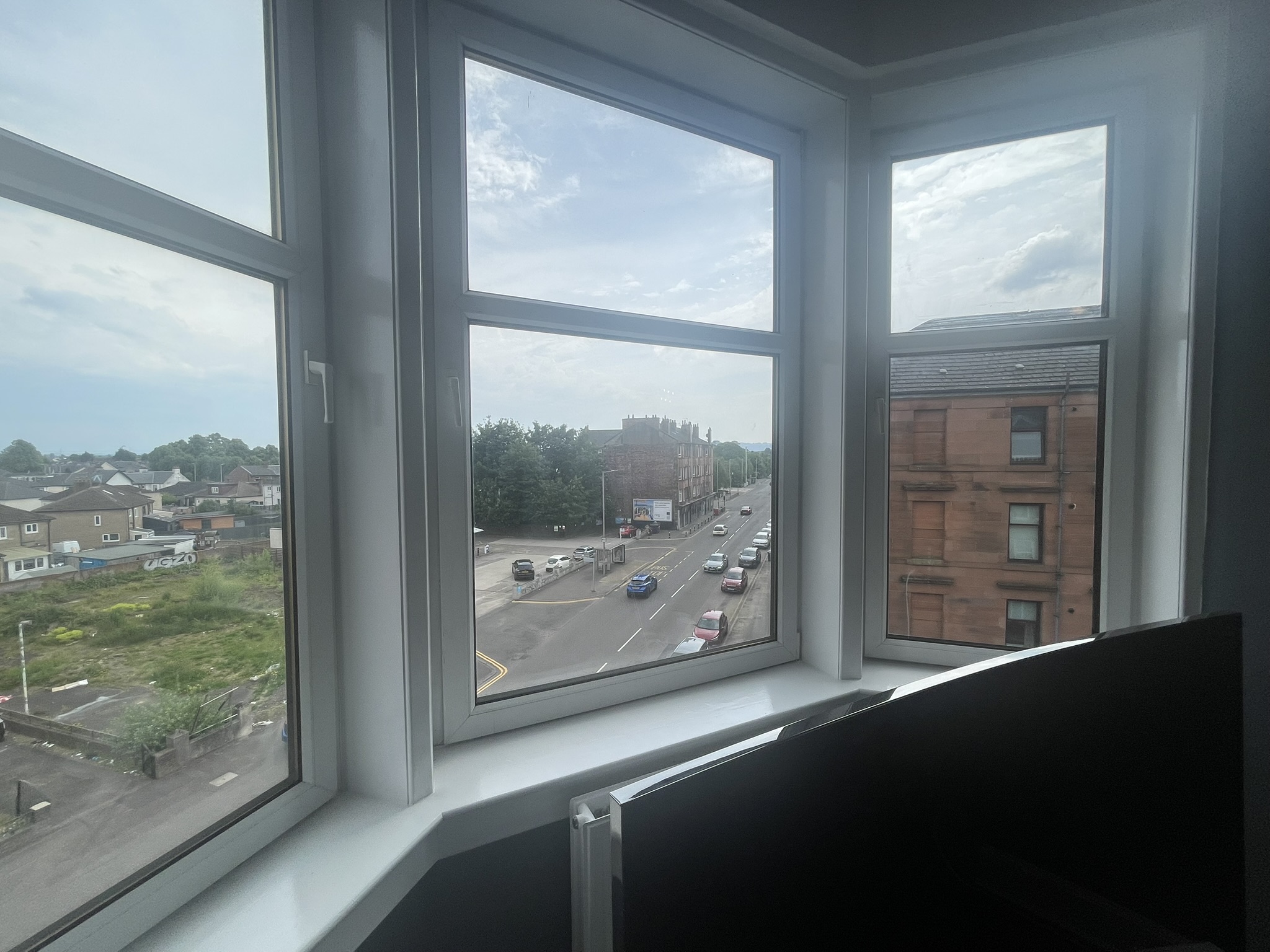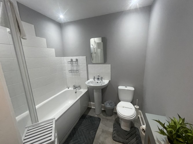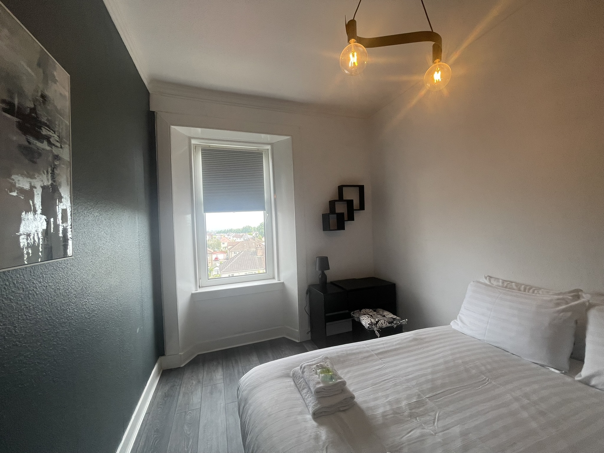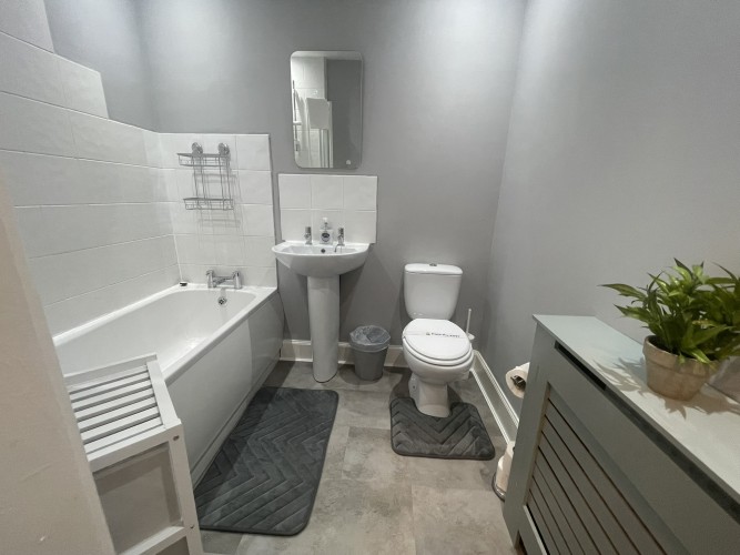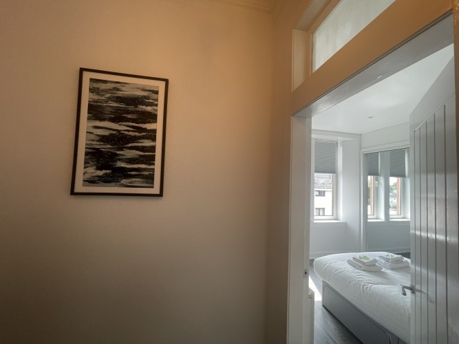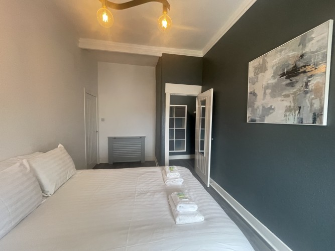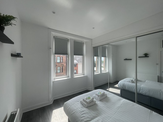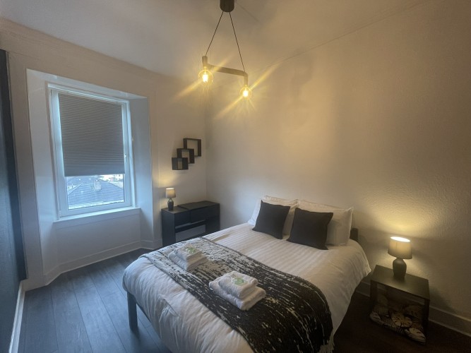 A well located flat in Renfrew on a corner of Paisley Road. Recently renovated, this 2 bed offers an open plan living/kitchen/dining area with great views over the town. Close to Braehead Shopping Centre, Soar and only a couple of minutes to Glasgow’s M8 Motorway at Junctions 25a and 26. Frequent bus service to City Centre right outside. Professionally cleaned, linen and towels are removed from the property after each stay and replaced with freshly laundered supplies and toiletries.