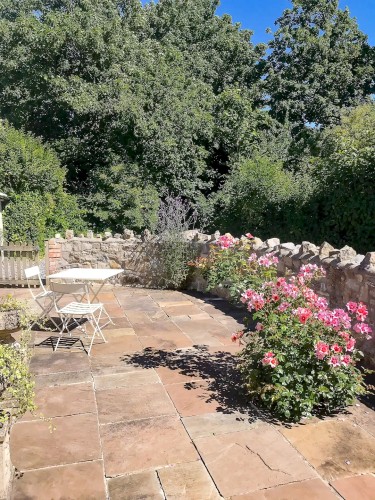 Outside is a private paved south facing garden with seating and a table to enjoy a morning coffee or glass of wine in the evening. Sun loungers and barbecue are also available.