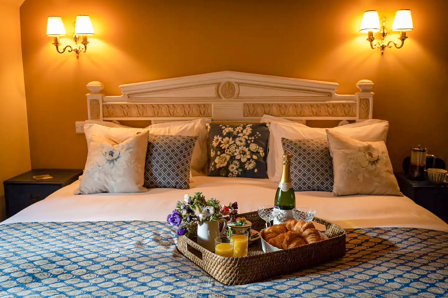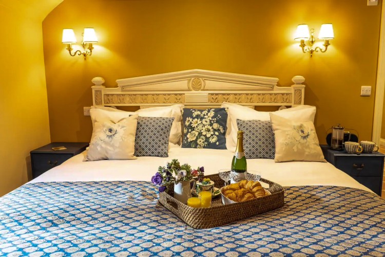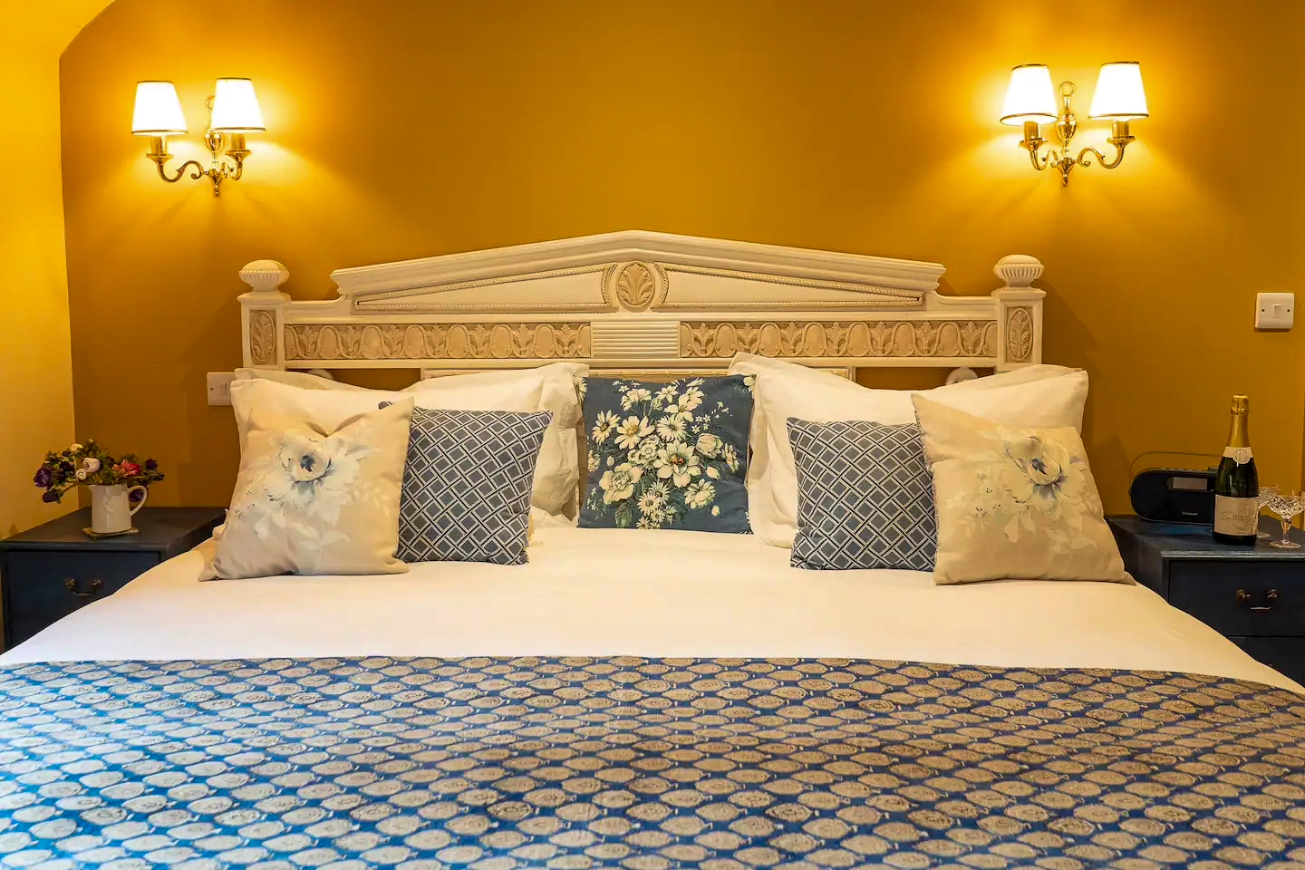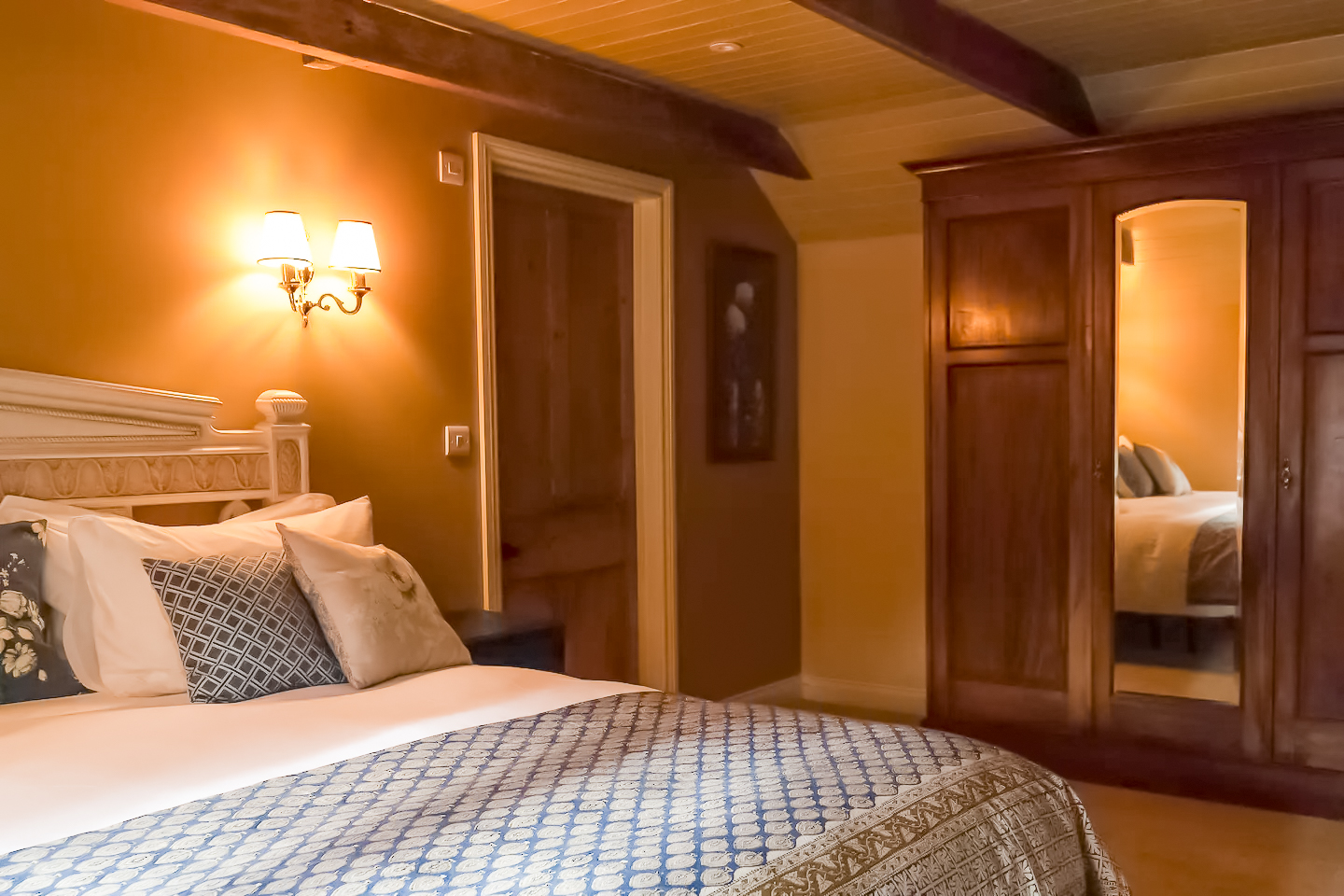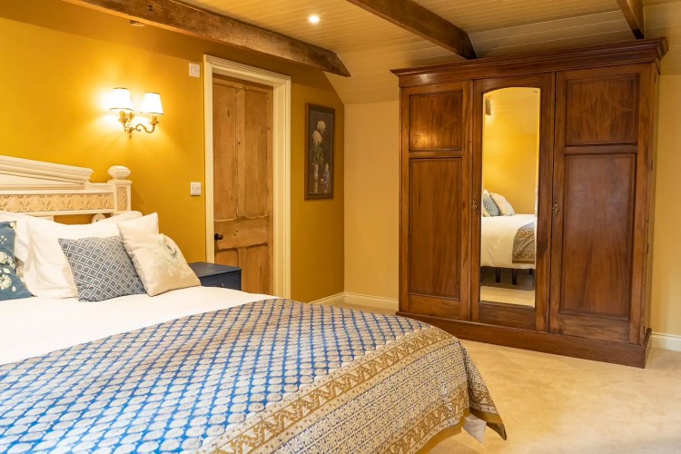 The spacious yet cozy bedroom has a huge emperor bed dressed with luxury cotton bed linen and a large antique wardrobe with plenty of space for all your clothes.