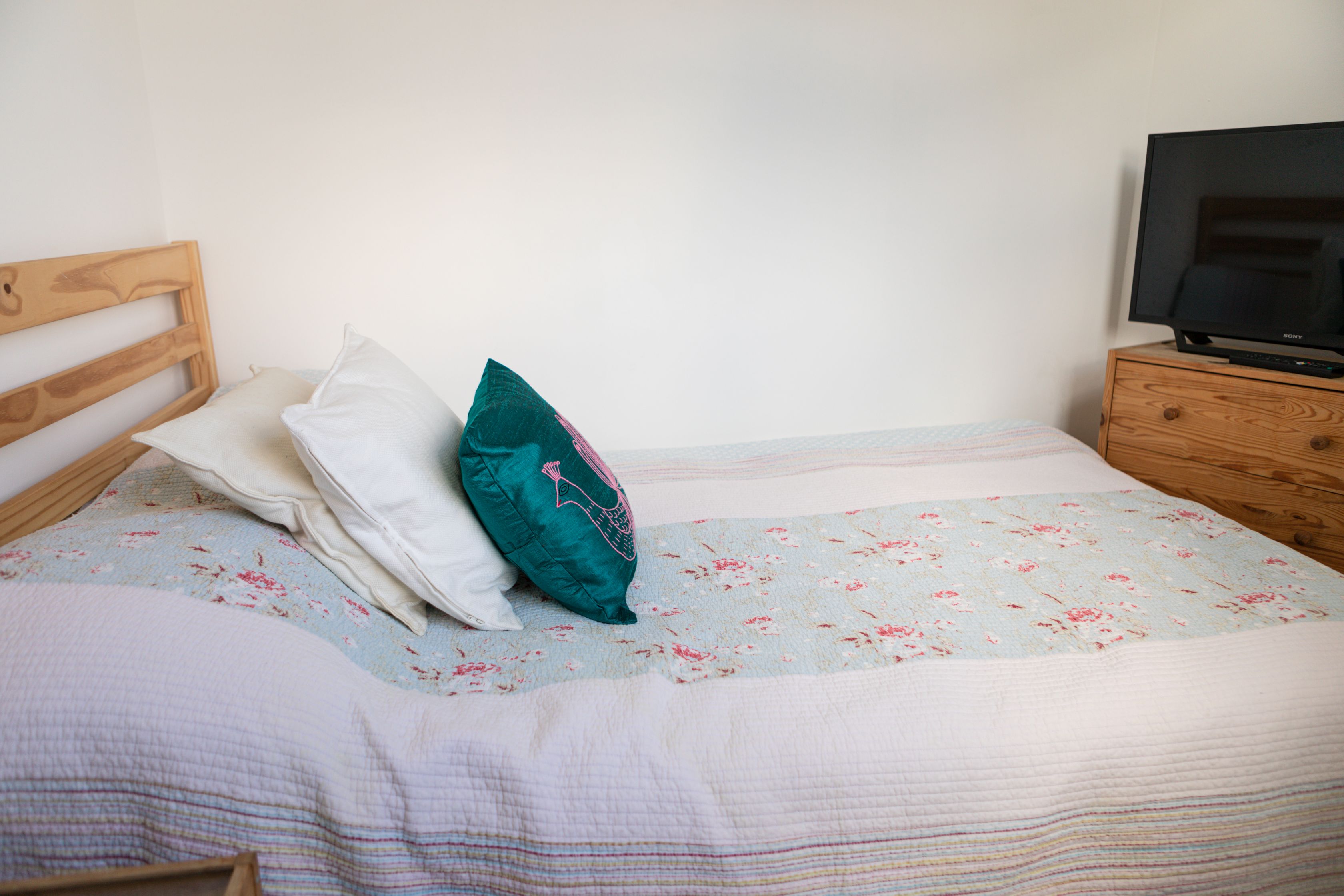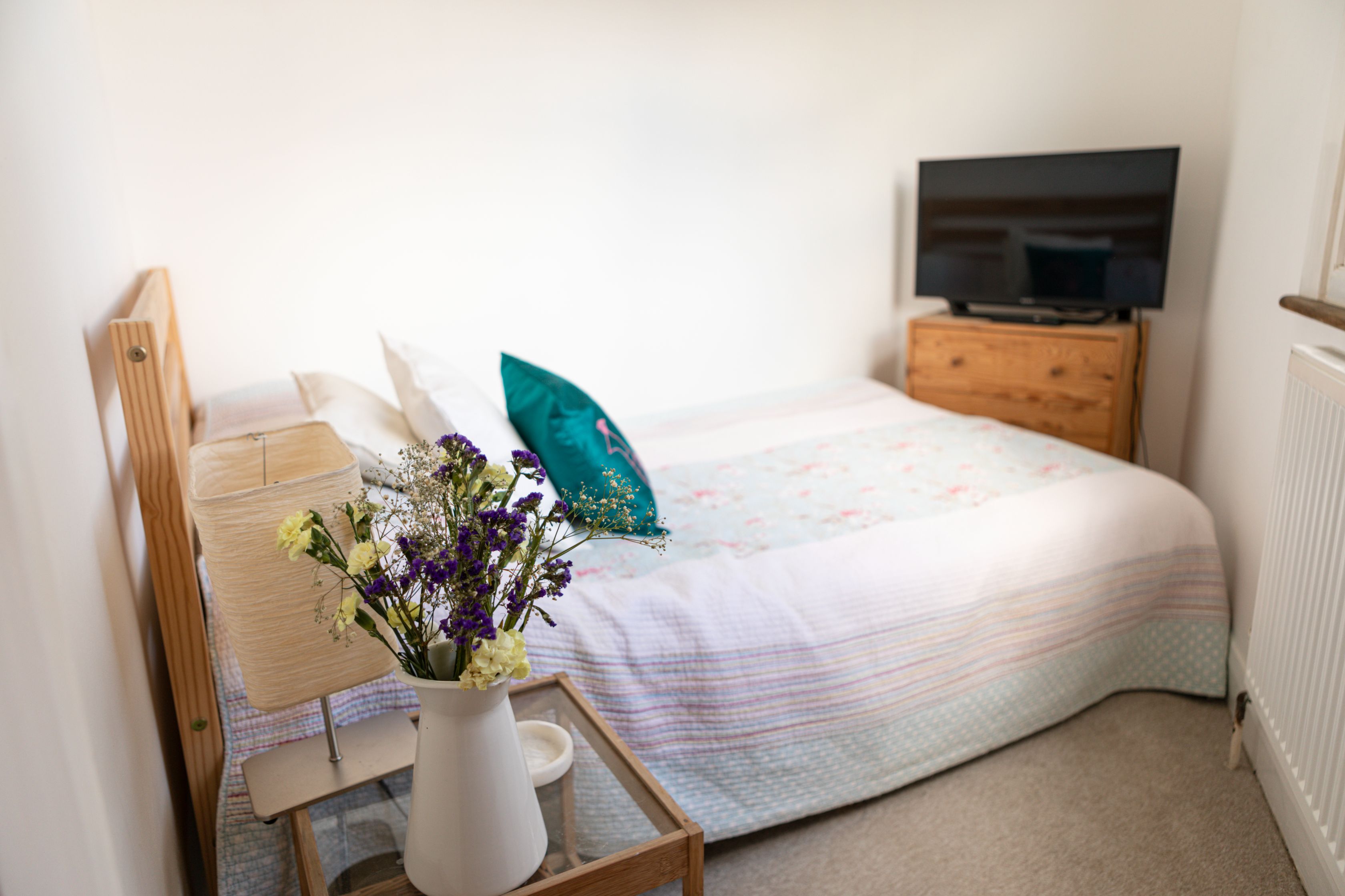 The master bedroom has a super comfortable king bed with fresh hotel-quality linens. There’s also ample storage and wardrobe space so you can fully unpack and settle in. The second bedroom has a small double bed with a Tv.