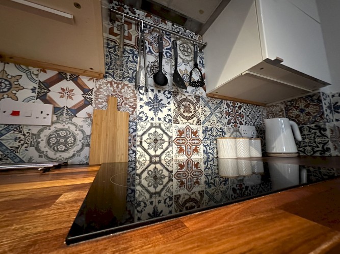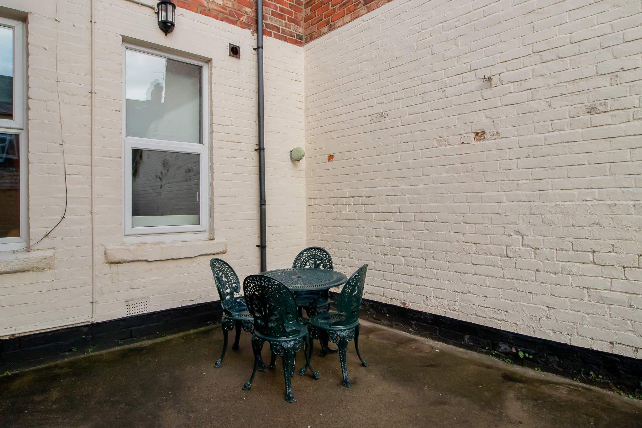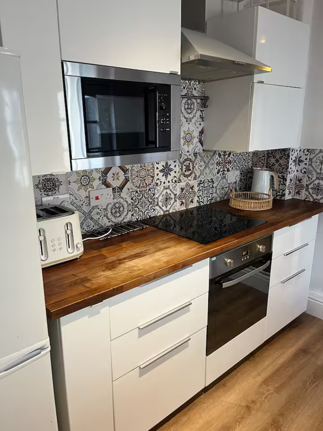 The kitchen and bathroom are both at the rear of the property. They are both good sizes and have many key amenities to make your stay at my flat comfortable and convenient. There is a private yard at the rear of the property for you to enjoy. Hopefully you arrive on a bright and sunny day and you can enjoy the outside space.