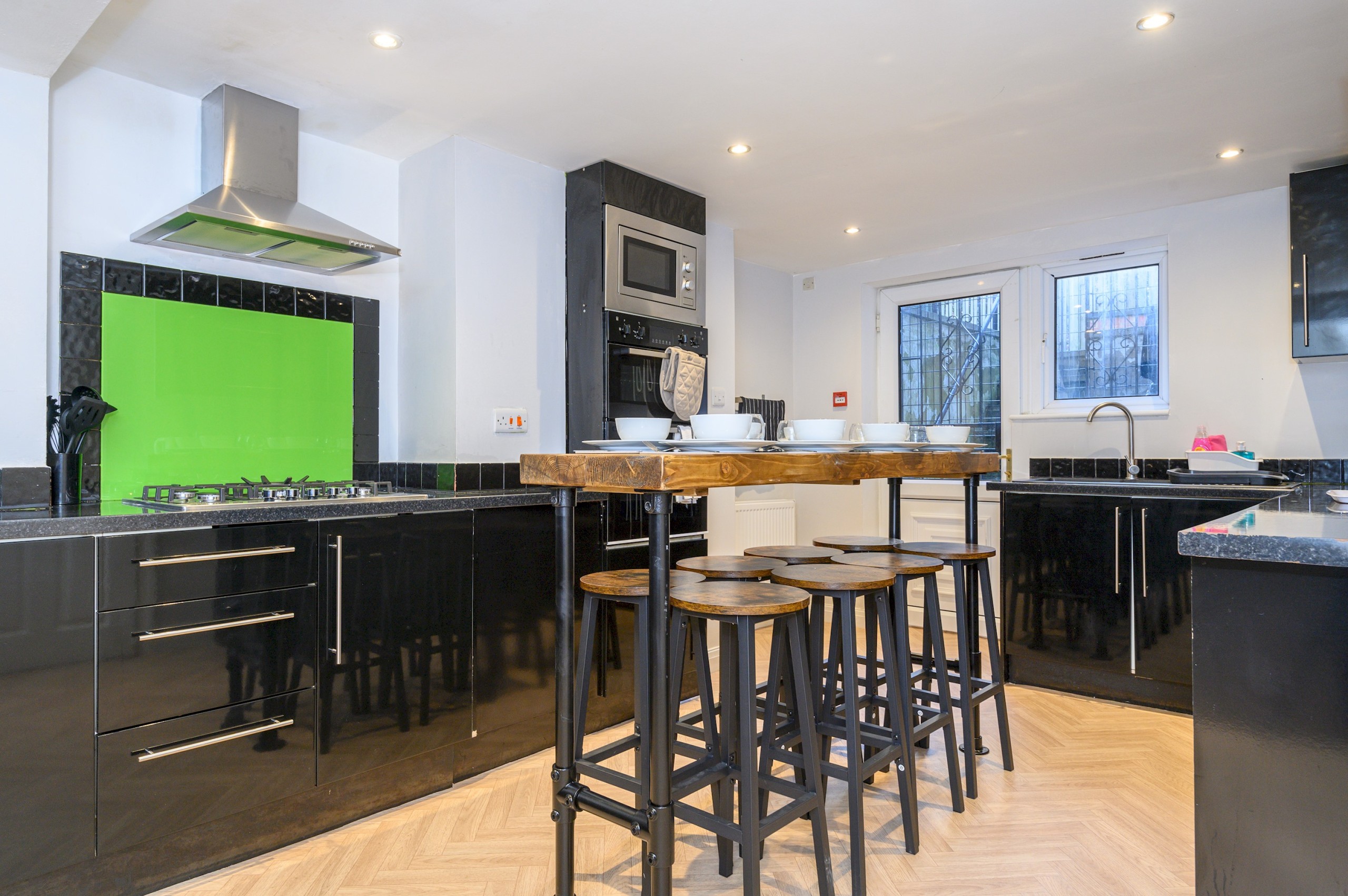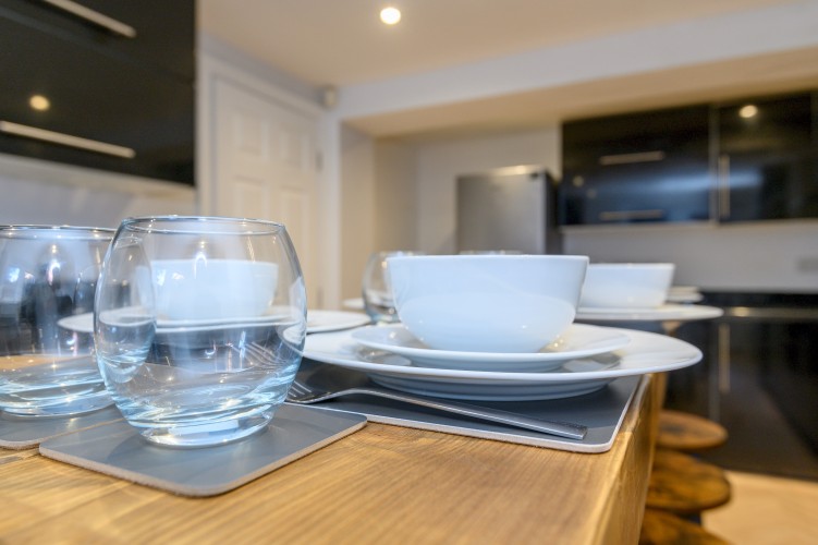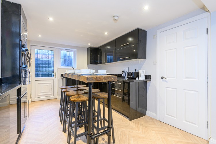 Our property features a spacious, modern kitchen equipped with all essential appliances, perfect for preparing meals with ease. The dining area comfortably seats 8, making it ideal for group meals, family breakfasts, or dinner gatherings with friends.
