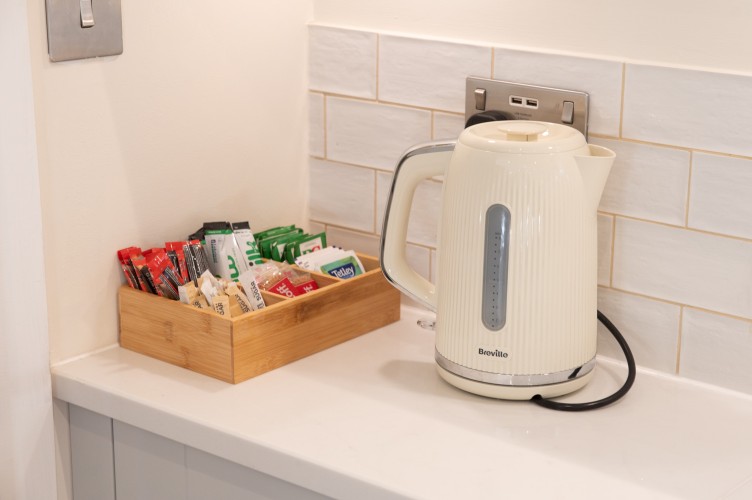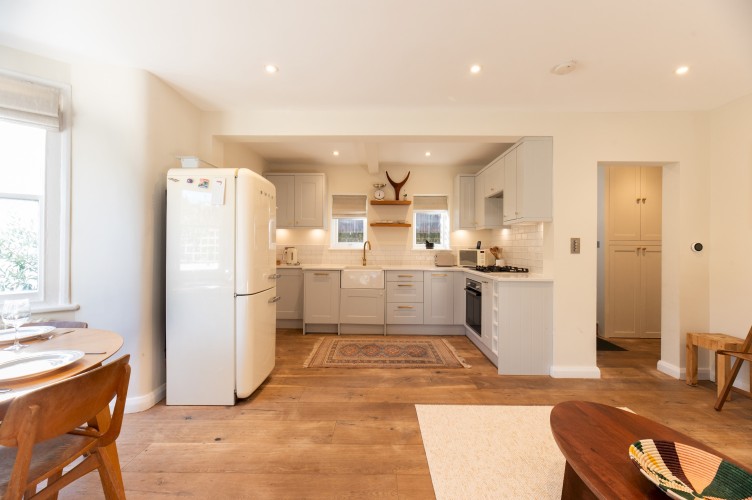The kitchen is well equipped with everything you could need for your stay, including high end appliances.