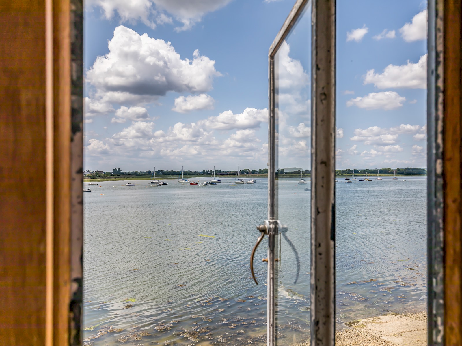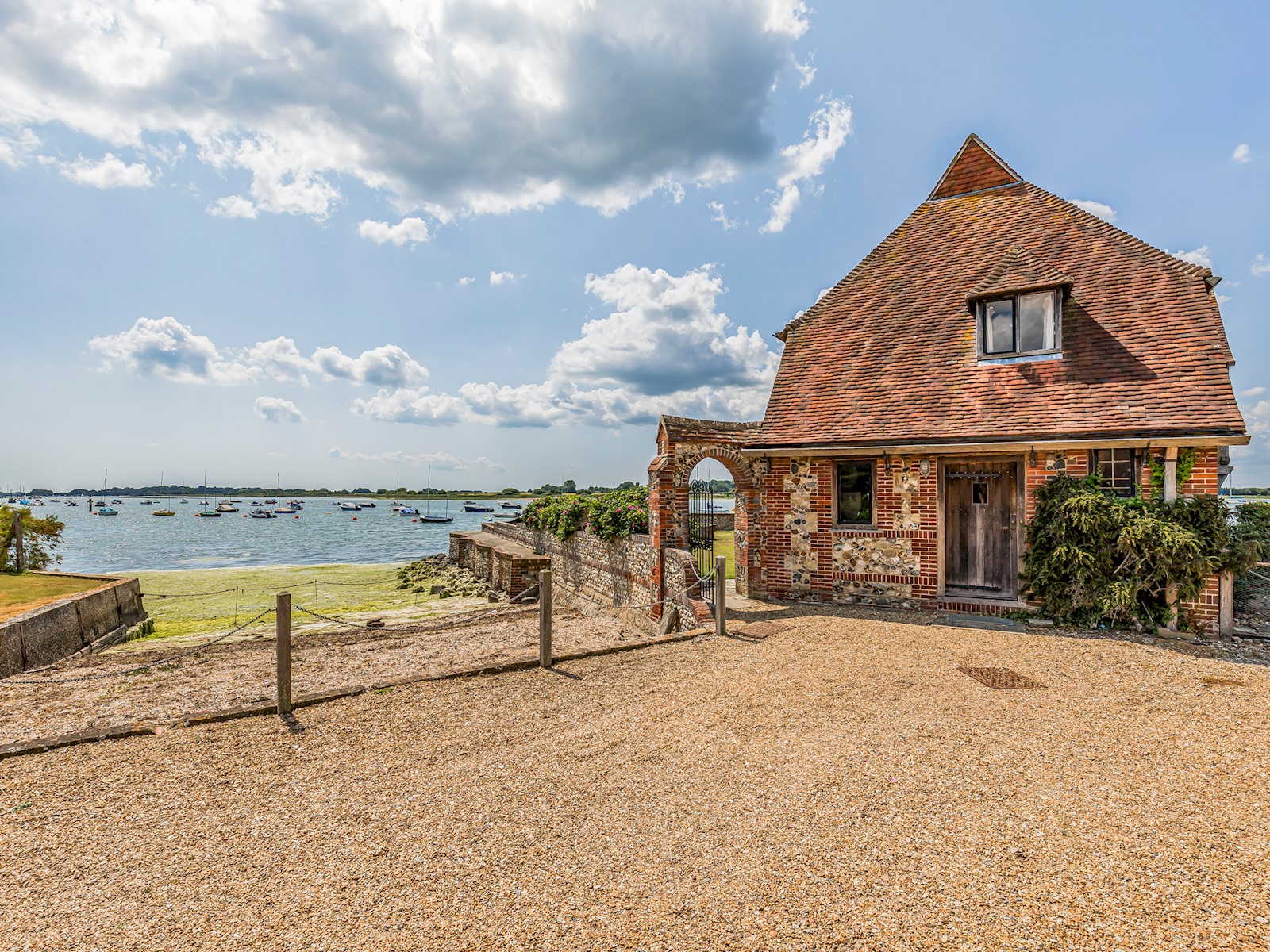 As you come down the driveway and approach the house, immediately on your left, you will see the private slipway into the harbour, and there is parking for 5 cars. Enter through the front door into the kitchen area with original cabinetry from when the house was built. As you head down the hallway, on the left-hand side, there is a twin bedded room with views out to the harbour and quayside. There is a shower room and a separate WC downstairs. The sitting room, with its views of Quay Meadow and the harbour, is a charming room for spending time in or relaxing in front of the smart TV . Beyond the sitting room is the glazed dining room, which sits right on the harbour wall. This is a fabulous place to dine with friends and family as you watch the boats and sailing happening right there on the Bosham waterfront.