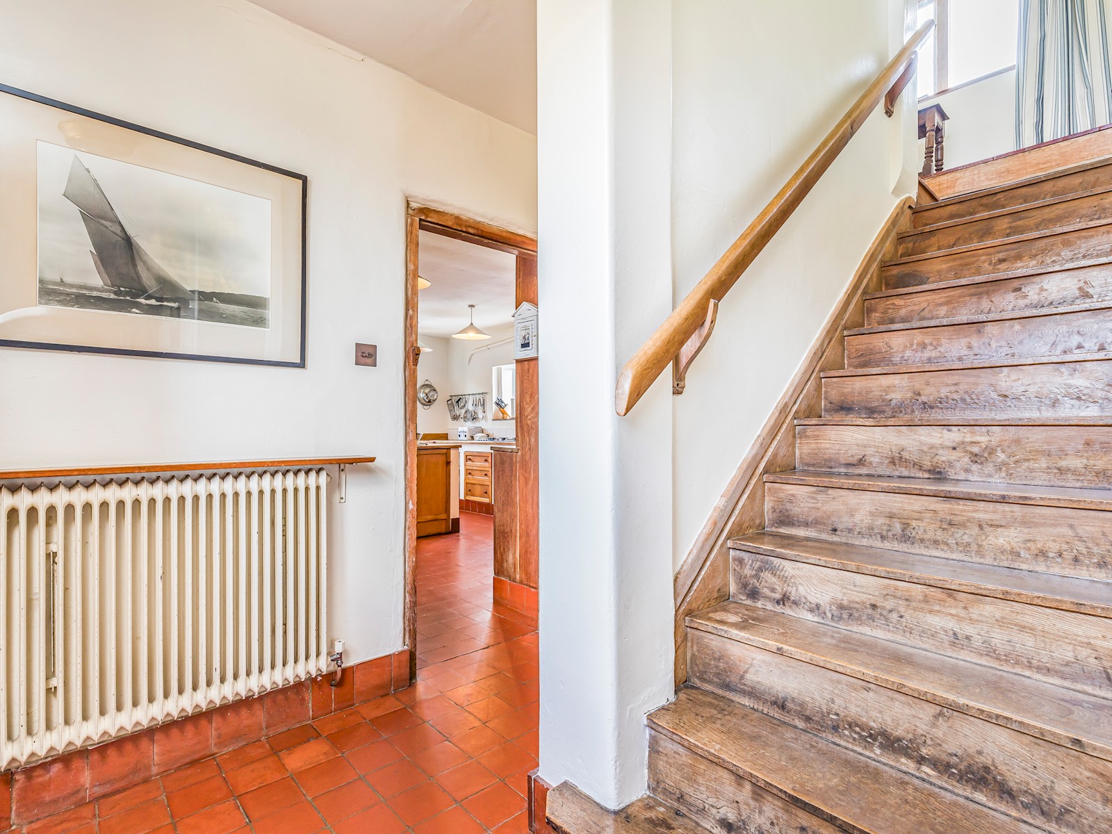 As you head up the original oak staircase to the landing, more spectacular views await you of the quayside and the sailing club. There are two single bedrooms, both with hand wash basins. There is a family bathroom, and further along are the two spacious super king bedrooms, one of which has an ensuite bathroom. There is plenty of storage for clothes.