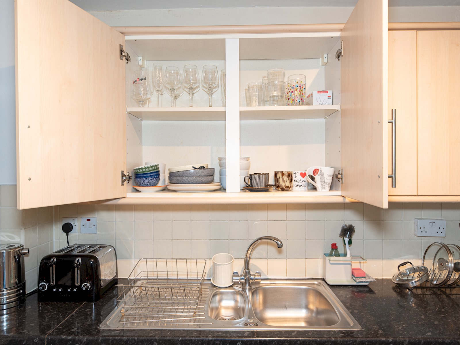 There’s a fully equipped separate kitchen, complete with everything you might need during your stay — whether you’re whipping up breakfast or cooking a full dinner.