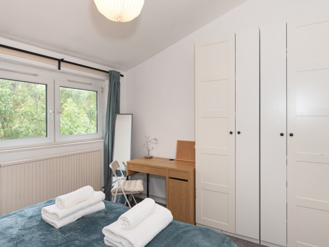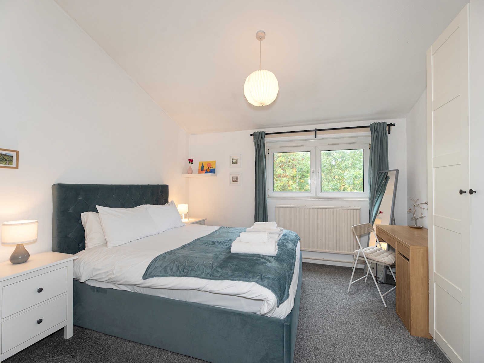 Upstairs, you’ll find: A spacious master bedroom with a comfortable double bed, large wardrobe, and a desk/vanity area.