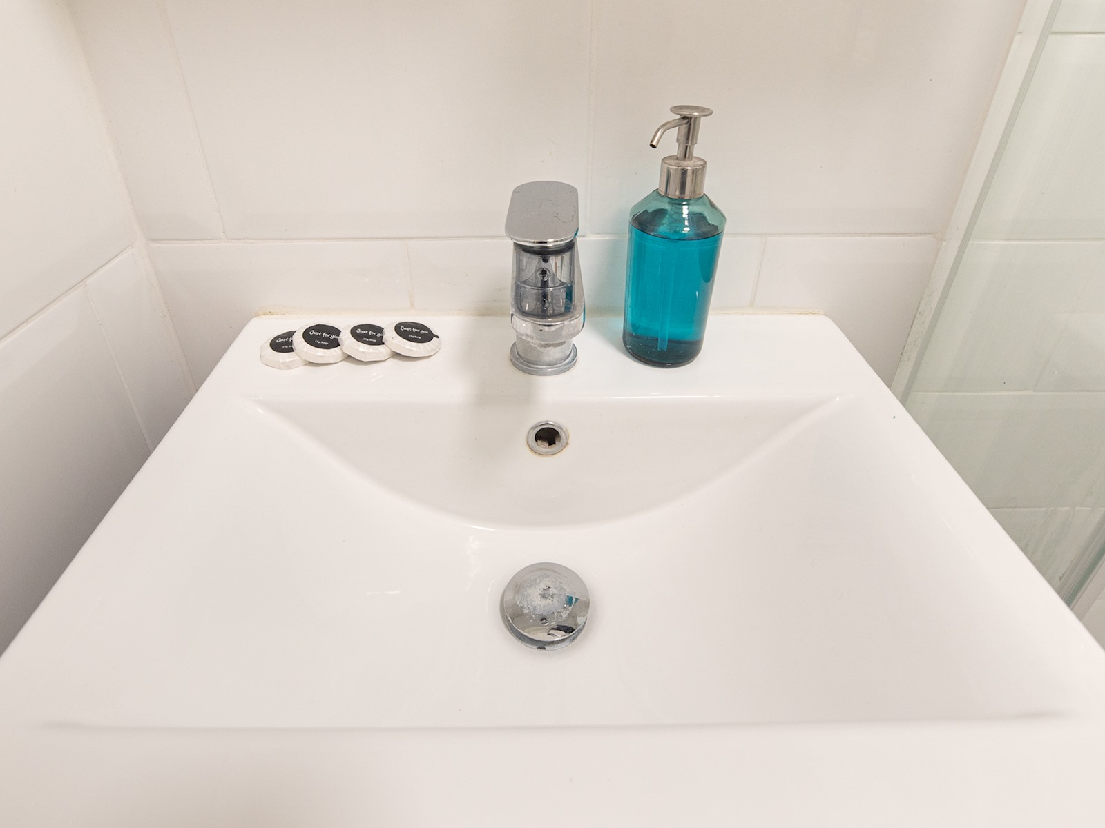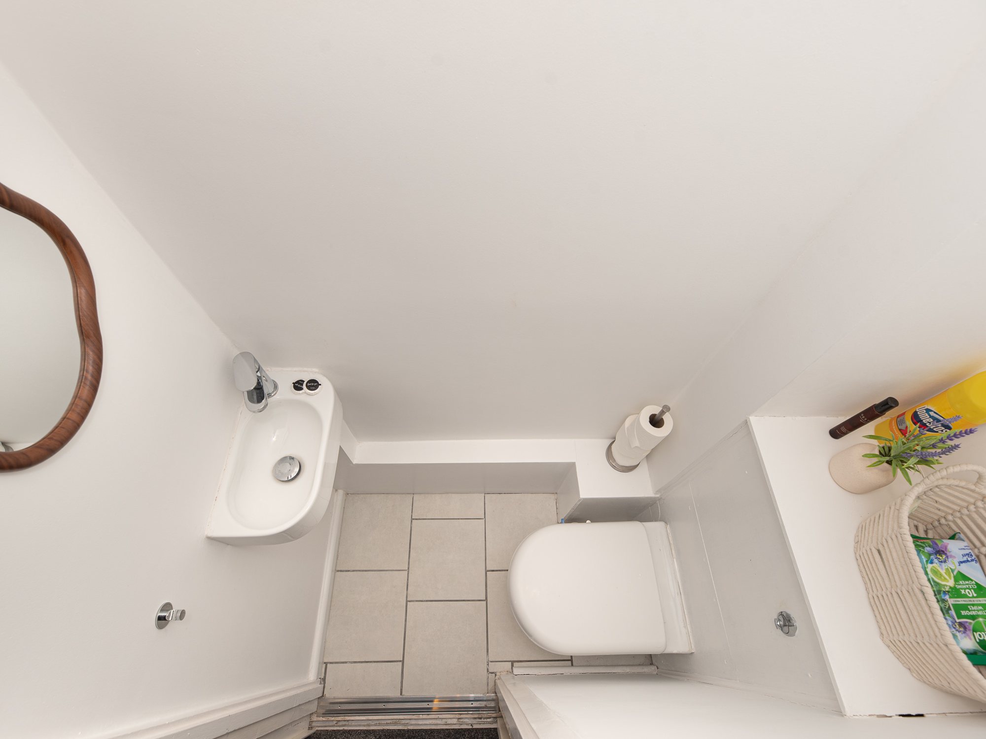 On the upper floor, there’s a separate toilet and a modern bathroom with shower — clean, bright, and convenient.