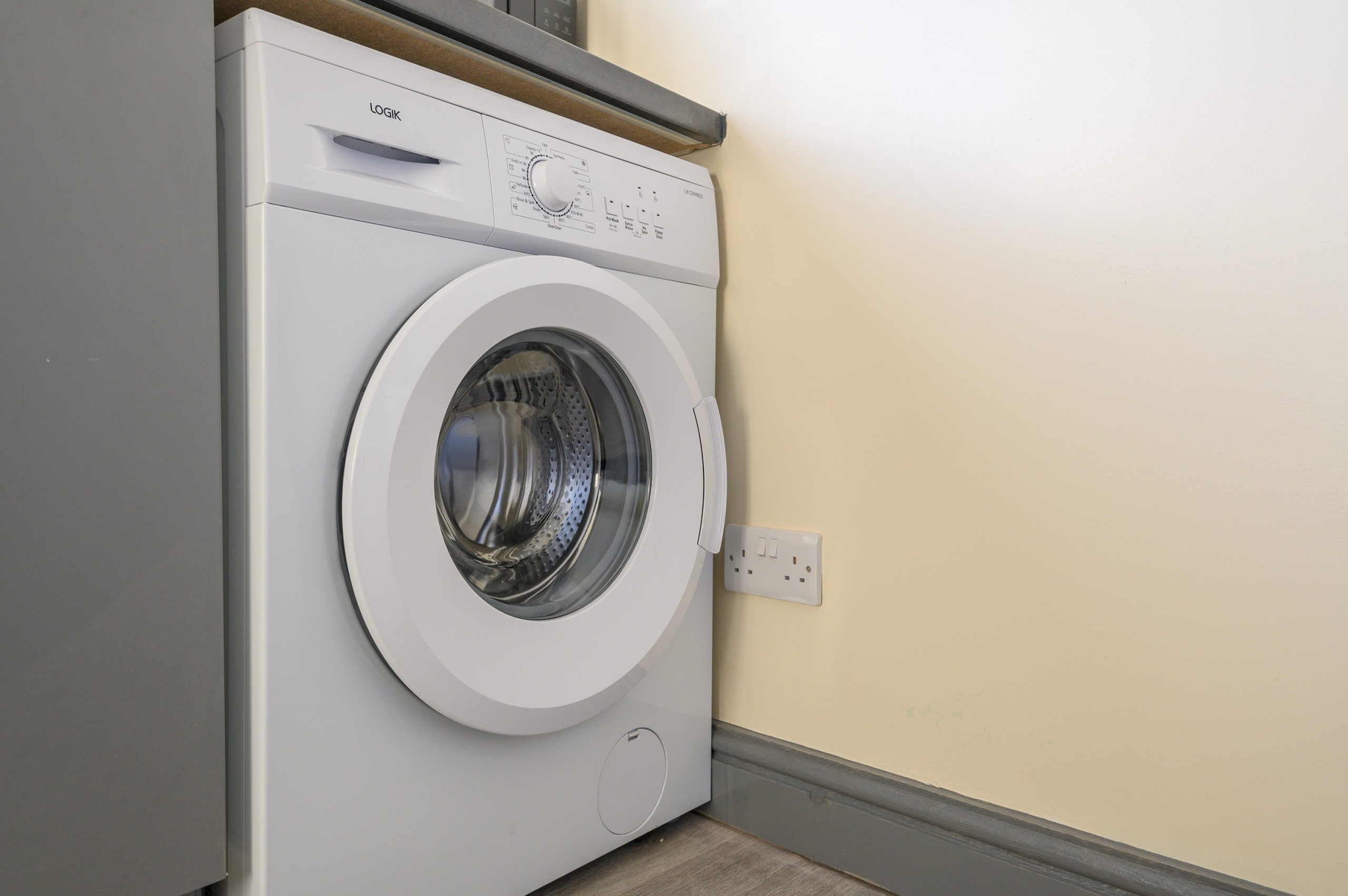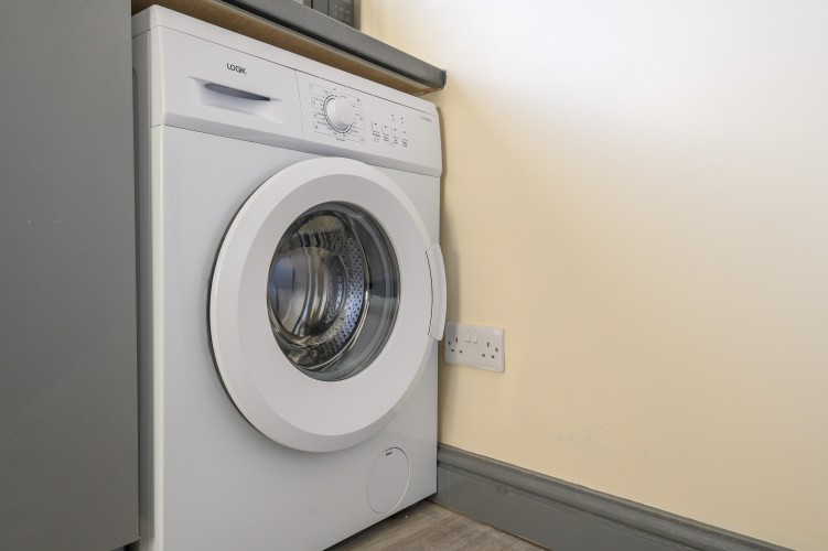 The apartment features a shared kitchen equipped with a cooker, microwave, and washing machine, everything you need for a comfortable stay.