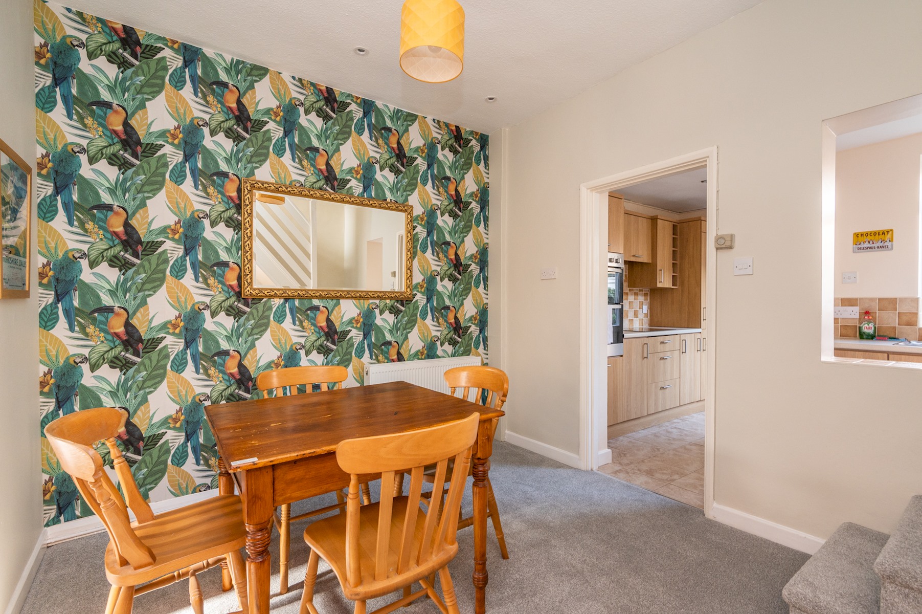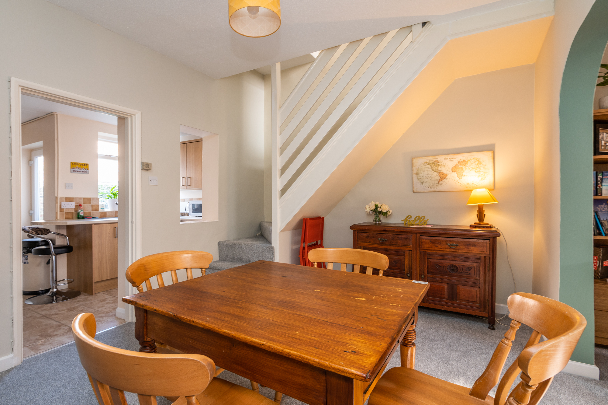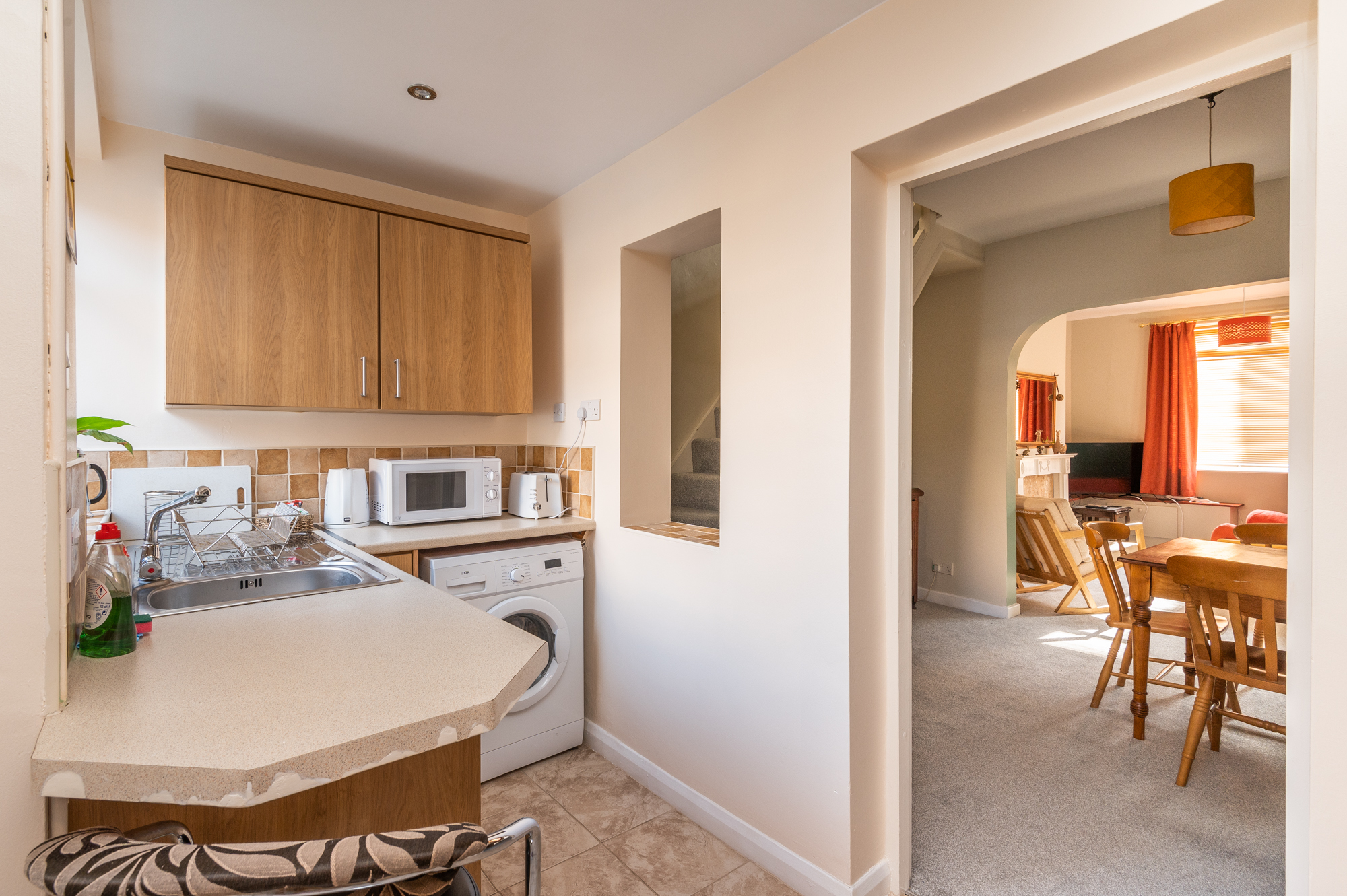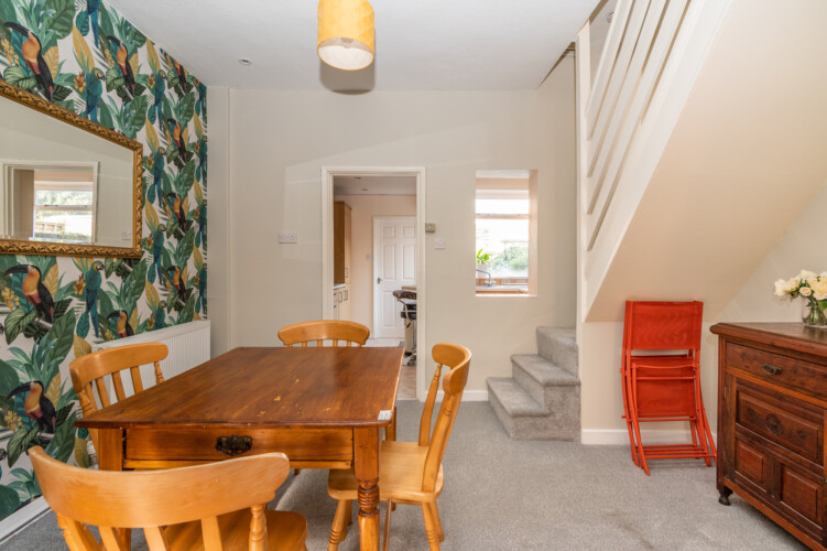 Downstairs you can find a cosy living room with gas fireplace, which is open plan into the dining area. It was newly decorated, and new carpets were installed in 2022. The internet has been upgraded to Virgin Media fibre broadband with speeds of up to 100 Mbps! The kitchen is kitted out with a double oven, hob, washing machine and microwave. Please note that the downstairs bathroom has a generous size shower but no bath.