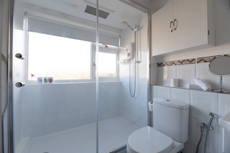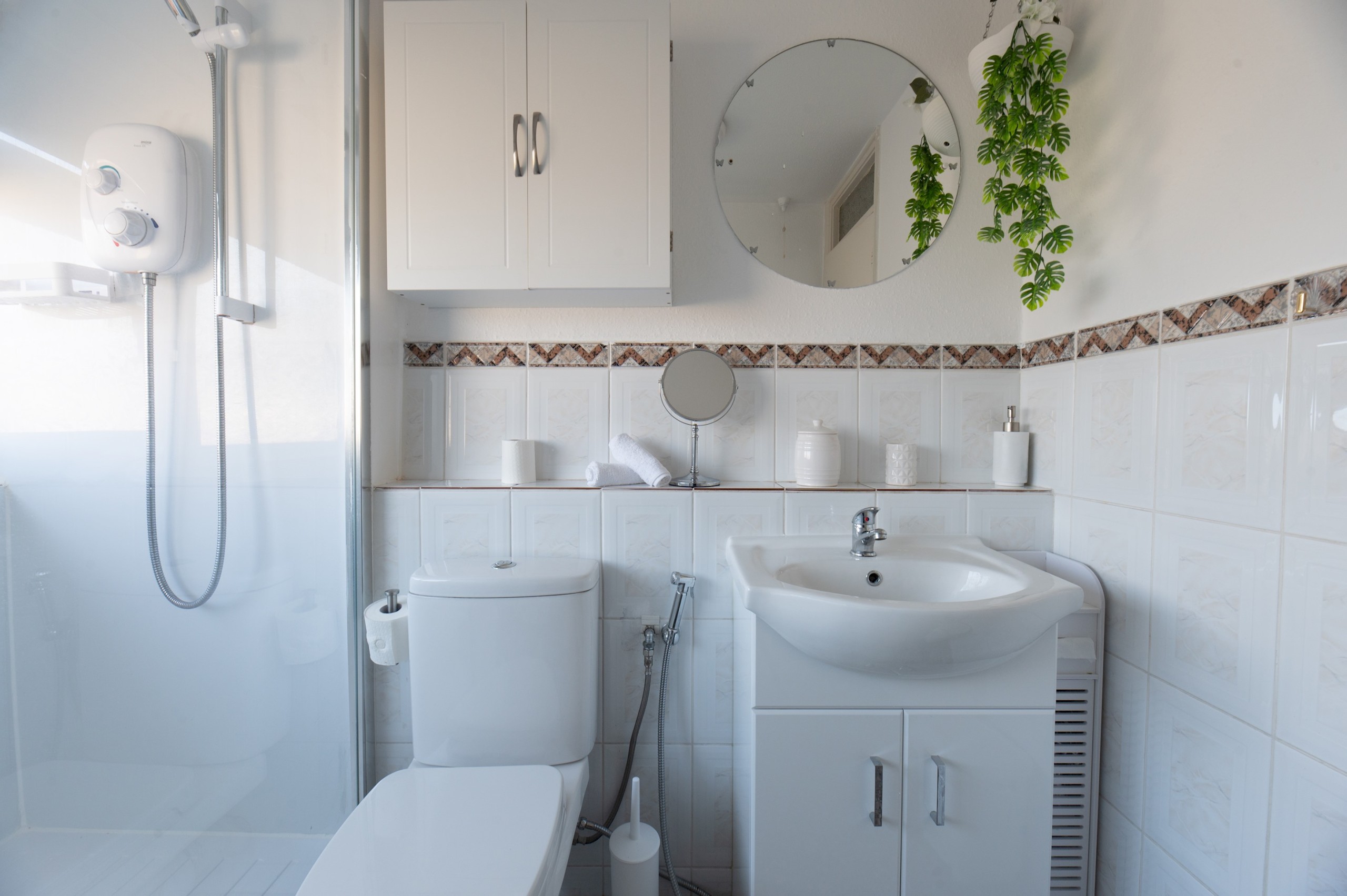 The second floor has two double bedrooms, one front‑facing and one rear‑facing, both with ample storage for clothes and luggage. These comfortable rooms provide a peaceful retreat at the end of the day, with space to unpack and feel at home during longer stays. On this floor you will also find another full bathroom with shower, making mornings easy for families and groups and reducing the need to queue.