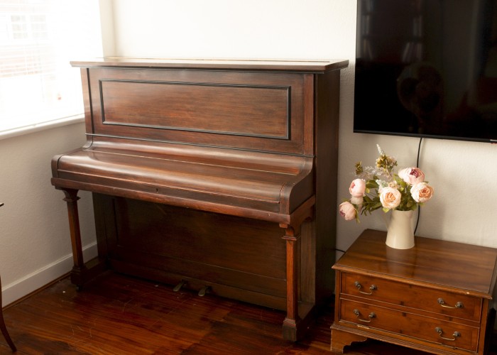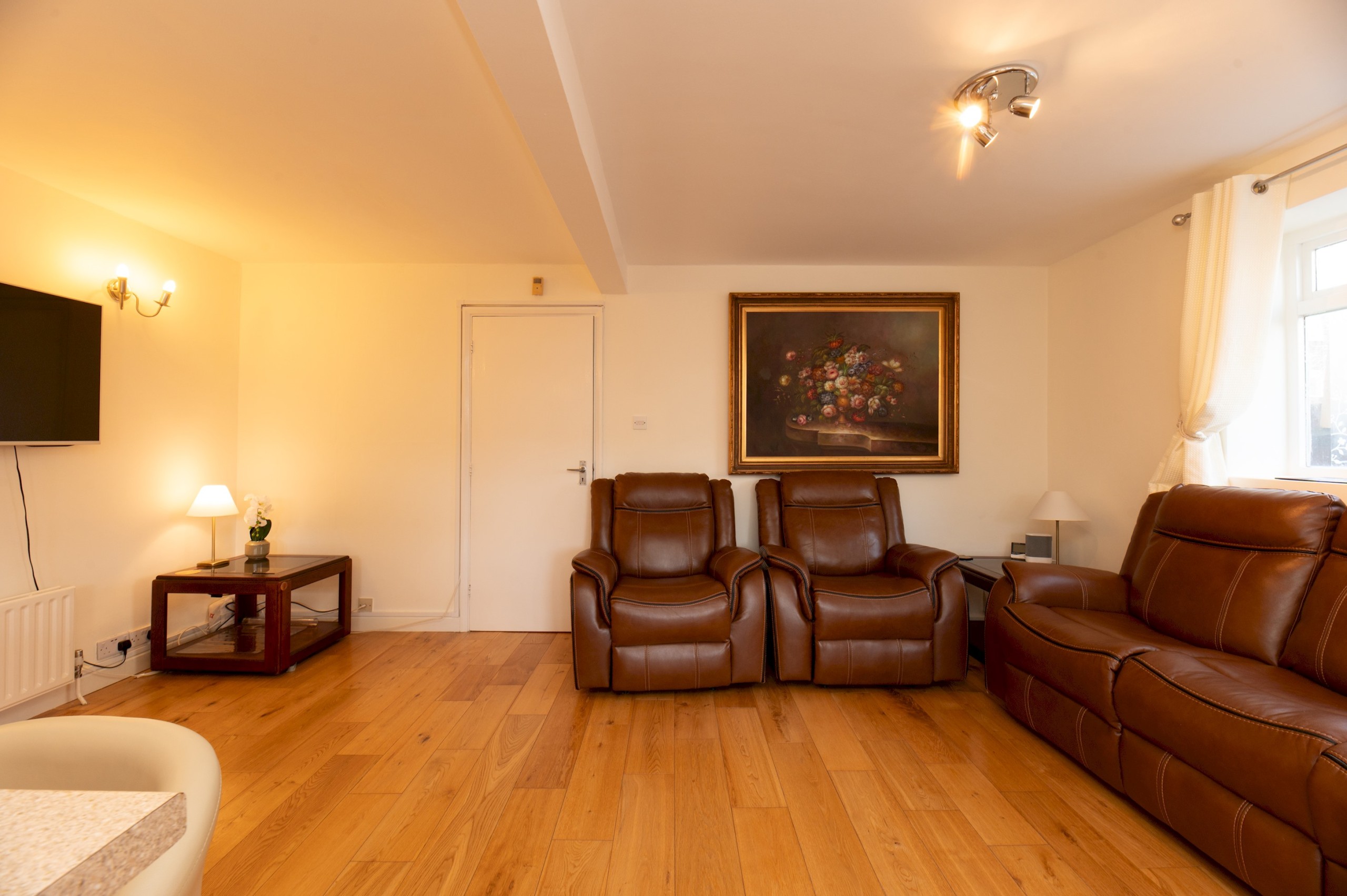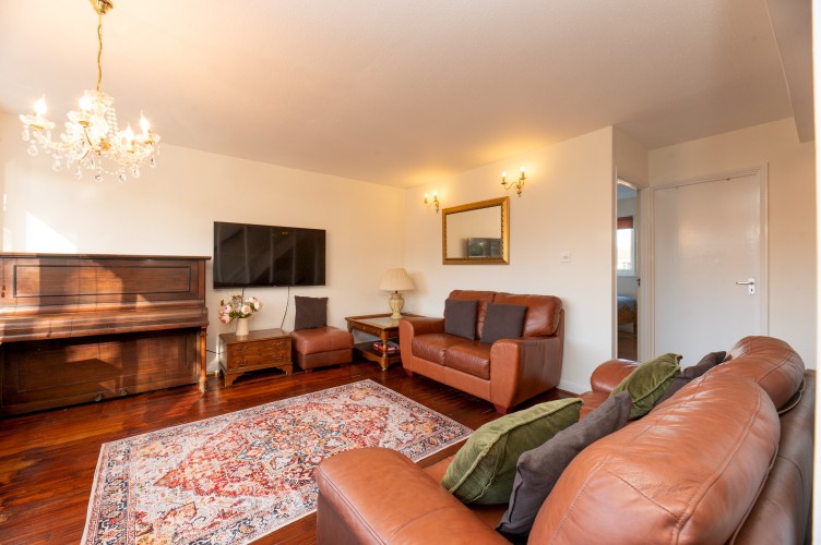 Upstairs, the first floor offers a bright main lounge with two comfortable sofas, large windows and a piano, creating a light‑filled and inviting space. It is the perfect spot to relax in the evenings, watch TV, enjoy music or gather round to chat after a day out exploring. This second living area means families or groups can spread out, with quiet space for adults while children play downstairs.