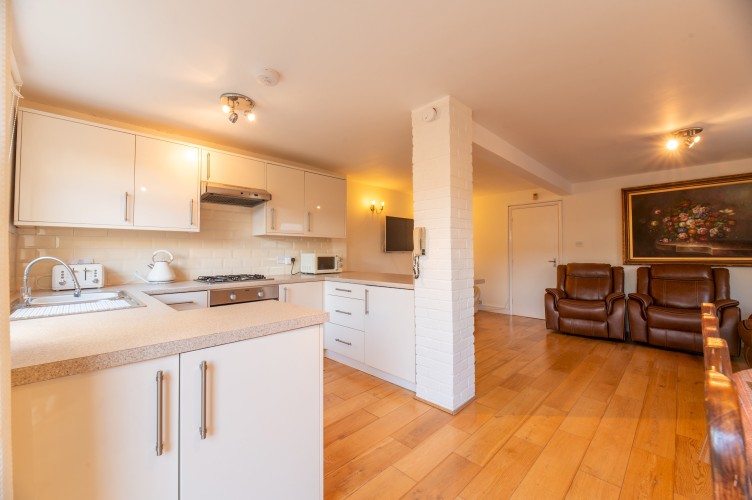 Outside, there is a private rear garden to relax in, complete with garden furniture for outdoor dining or a quiet morning coffee. This secure outdoor space is ideal for children to play or adults to enjoy a drink in the fresh air. At the front of the property, there is driveway parking, plus ample free on‑street parking for additional cars, providing convenient and stress‑free arrival and departure for guests travelling by car.
