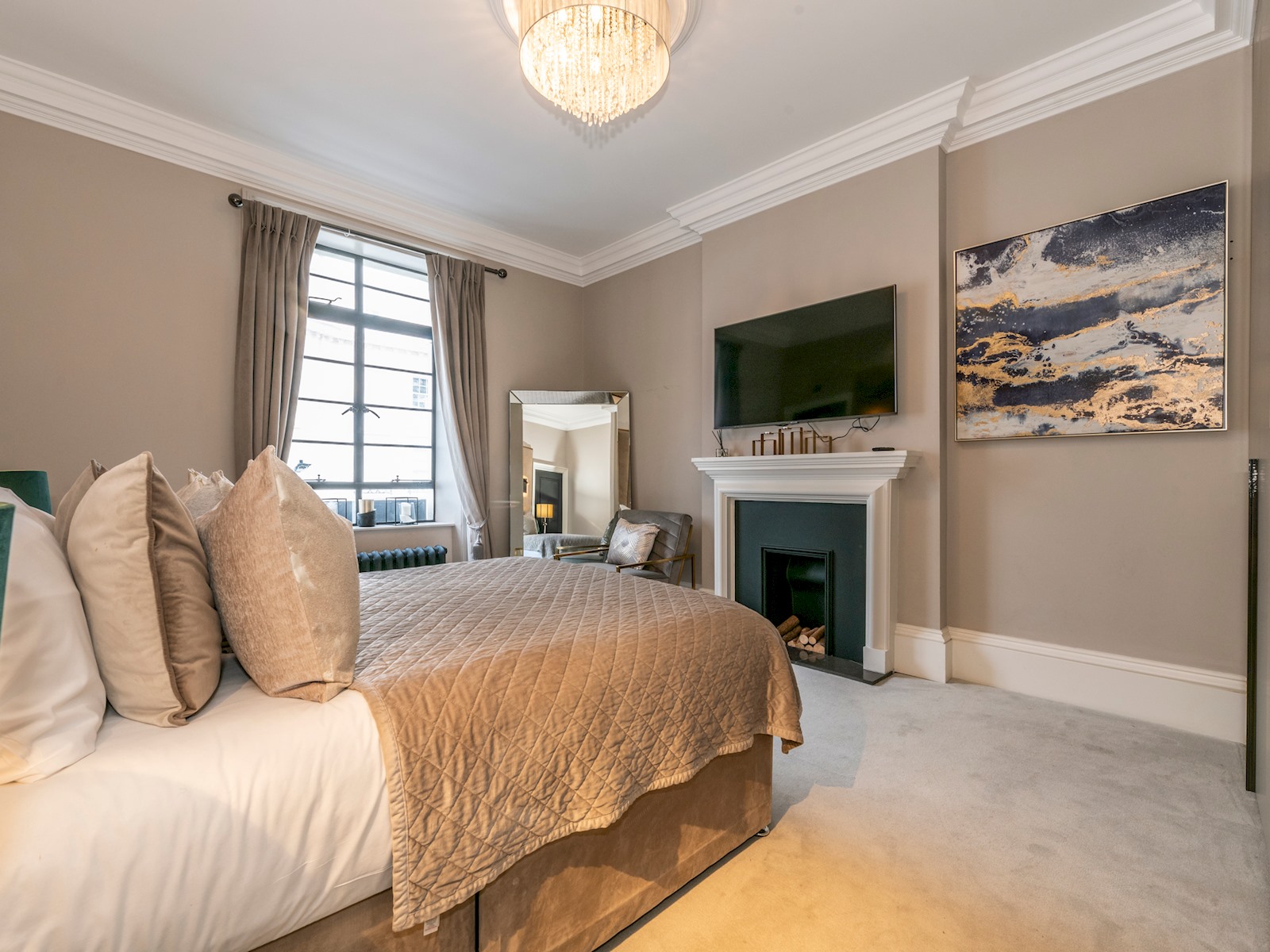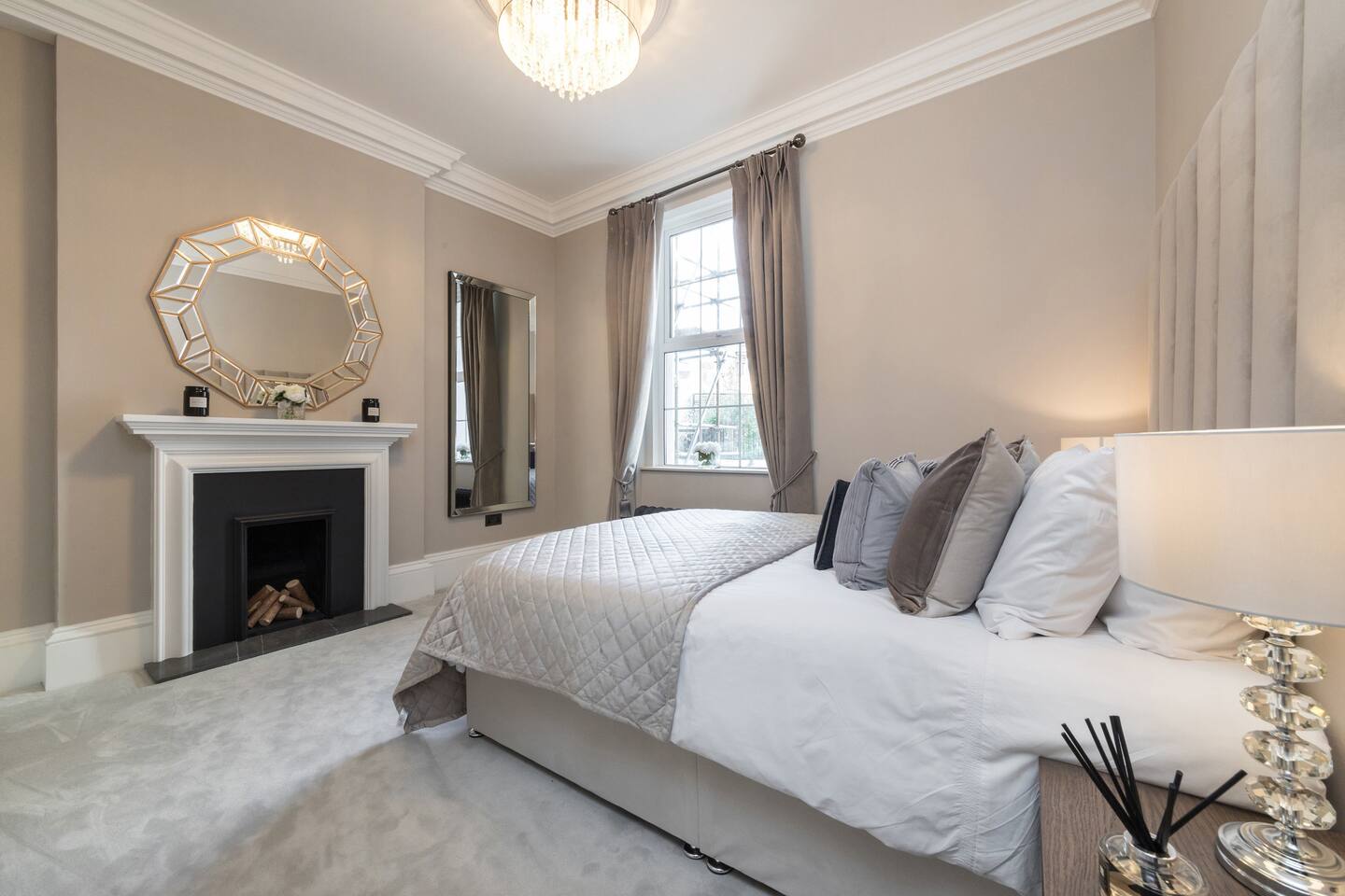 – The decorative fireplace serves as a focal point, enhancing the room’s cosy and classic charm.